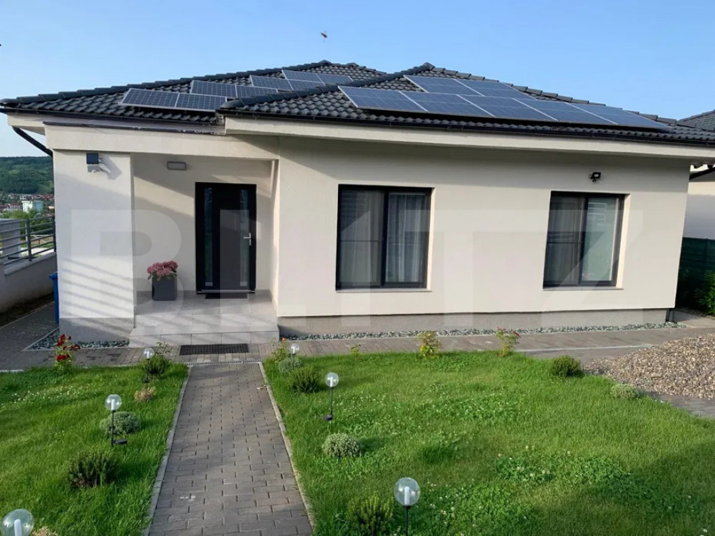 Proprietatea îmbină eficiența energetică (sistem fotovoltaic 6 kW) cu confortul unei curți amenajate și cu avantajul unei poziționări liniștite.