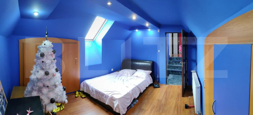 Blitz vă oferă spre vânzare o casă deosebită, construită în anul 1995, cu o suprafață utilă totală de 265mp pe un teren generos de 2667mp. Casa este la intrarea in Reghin dinspre Targu Mures, situata pe teren drept, cu intrare din strada sau din curte. Curtea este frumos amenajata cu pavaj, terasa acoperita, spatiu verde, livada cu pomi fructiferi. Pe teren se afla si doua sere solide, pe fundatie de beton, structura de fier si acoperite cu sticla plus o rasadnita generoasa pe fundatie de beton, acoperita cu plexiglas, ideala pentru a incepe o afacere sau pentru a creste o gradina moderna pentru consum propriu. Casa dispune si de instalatie curent trifazic, este racordata la apa din fantana proprie, la reteaua de gaz si canalizare. Fiind compartimentata in doua zone, in prezent, una pentru locuit si cealalta pentru uz comercial, casa are doua centrale pe gaz si una pe lemn. Incalzirea la parter in zona de locuit este prin pardoseala iar in restul zonelor este cu calorifere. Zona de locuit dispunde de o bucatarie superba complet mobilata si utilata, un living generos, baie, dressing, hol mare, dormitor, scari interioare din beton pentru acces subsol si etaj. Cele doua camere de la subsol sunt finisate cu gresie si faianta, ideale pentru camara, sau spatii de depozitare. La etaj gasim 3 dormitoare. Zona pentru uz comercial in prezent, este compartimentata in doua camere mari cu bai separate si acces etaj pe scara interioara din lemn unde gasim o camera foarte generoasa open space cu iesire in balcoane si o baie. Casa are foarte multe avantaje si beneficii si merita vizionata! Cod ofertă / ID BLITZ: P162623 Id intern: P162623