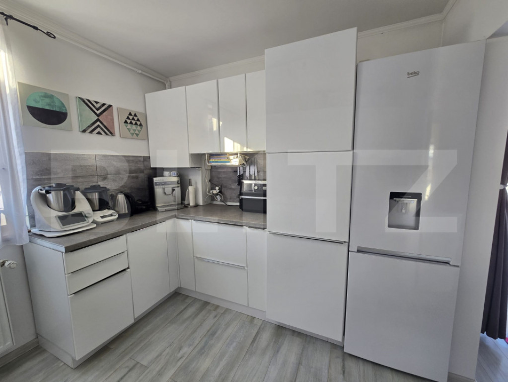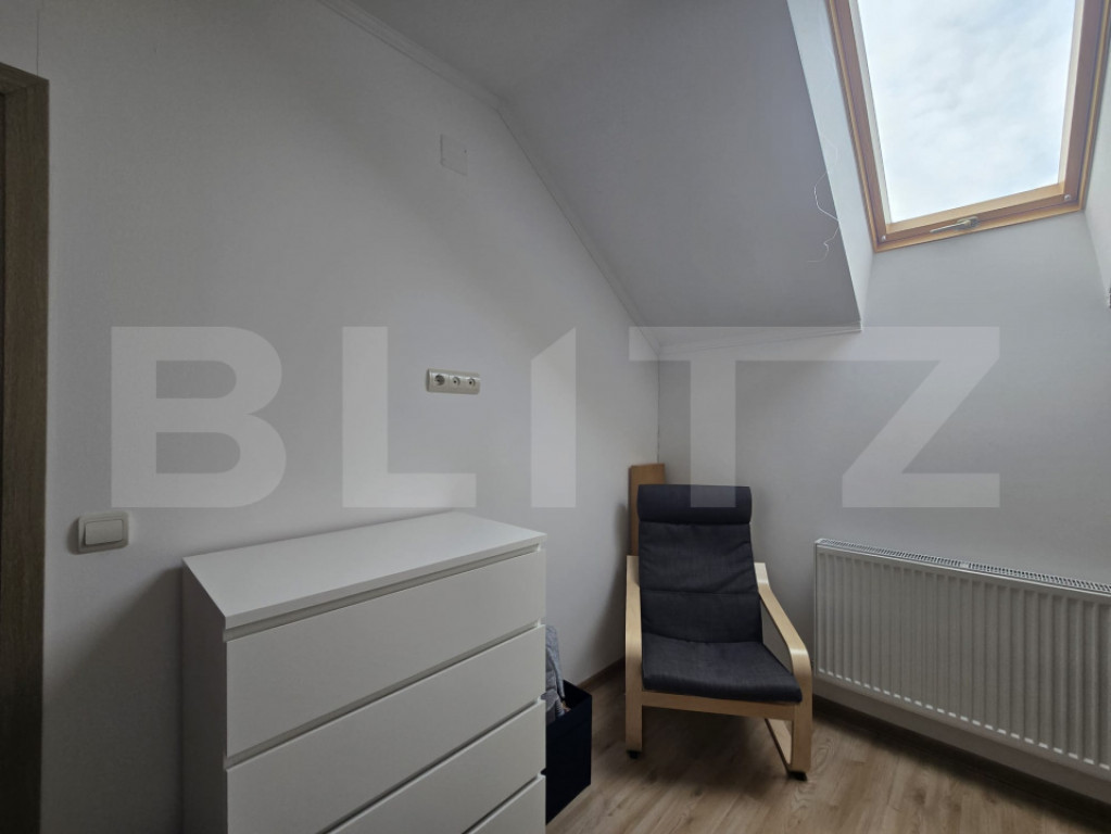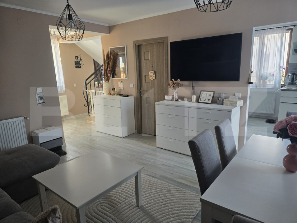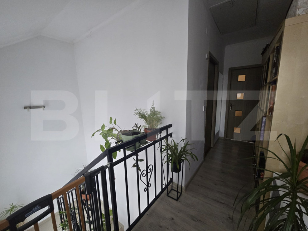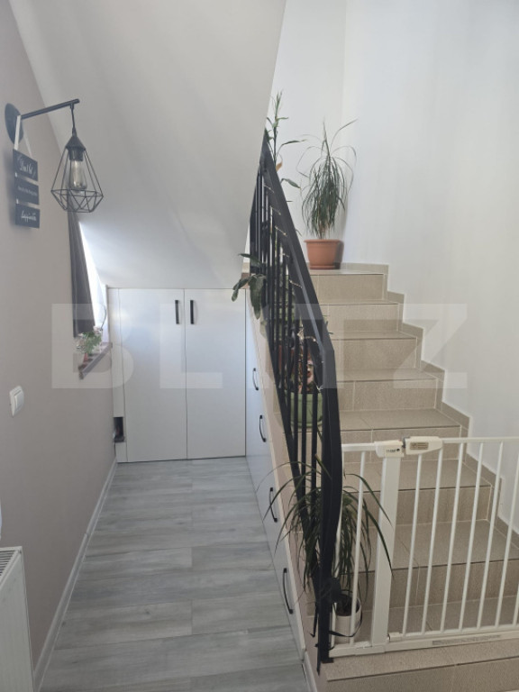 Casă tip triplex – unitate de capăt, 2018 | 95 mp utili | Teren 308 mp | Zonă liniștită, la 10–15 min de Târgu Mureș Vă prezentăm o proprietate modernă, construită în 2018, poziționată într-o zonă rezidențială liniștită. Fiind unitatea de capăt a triplexului, beneficiază de un avantaj clar: intimitate sporită, acces facil și teren mai generos (308 mp) comparativ cu unitățile intermediare. ⸻ Date tehnice • Suprafață utilă: 95 mp • Suprafață construită: 114 mp • Teren: 308 mp (curte amenajată, parțial pavată) • Regim de înălțime: Parter + Mansardă + Pod (spațiu suplimentar de depozitare) ⸻ Compartimentare eficientă Parter • Living generos și luminos • Bucătărie separată, cu cămară • Baie • Hol de acces • Casa scării Mansardă • 3 dormitoare • Baie spațioasă • Balcon – ideal pentru relaxare Pod • Spațiu util pentru depozitare (organizare sezonieră, arhivare, etc.) ⸻ Construcție & Dotări • Structură din cărămidă • Termoizolație exterioară cu polistiren • Tâmplărie PVC cu geam termopan • Centrală termică pe gaz + calorifere • 2 aparate aer condiționat (mansardă) • Racord complet la utilități: apă, gaz, curent, canalizare Proprietatea oferă un nivel bun de eficiență termică și costuri optimizate de întreținere. ⸻ Exterior & Facilități • Curte amenajată, spațiu verde ideal pentru copii sau zonă de relaxare • Zonă pavată • Loc pentru 2 autoturisme în curte • Poartă cu acționare electrică • Stradă asfaltată aproape integral până la proprietate ⸻ Locație Situată într-o zonă retrasă și aerisită, proprietatea oferă echilibrul ideal între liniște și accesibilitate, cu legătură rapidă către Târgu Mureș (aprox. 10–15 minute cu mașina). Cod ofertă / ID BLITZ: P164950 Id intern: P164950