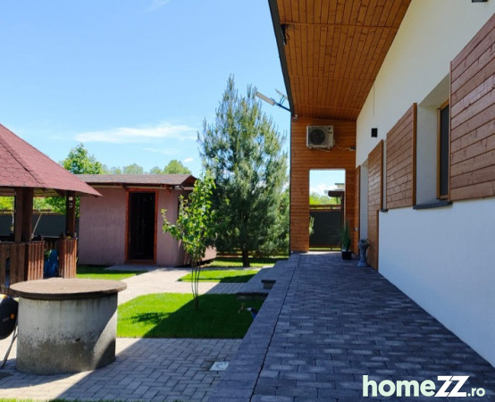Cel mai bun pret! Imobilul face parte dintr-o constructie noua. EDIL Floresti imobiliare va ofera o casa individuala de vanzare, in localitatea Gilau (iesirea din Gilau spre Oradea, access rapid la viitoare centura a Clujului). Casa este situata in zona turistica a localitatii, foarte linistita, cu access rapid la E60 dar retras de la drumul principal. Ideala pentru cei ce iubesc natura. In zona gasiti multa verdeata, proprietatea se invecineaza cu raul Capus, access direct la drum de tara pt plimbari cu ATV, motociclete, biciclete, etc. Casa a fost finalizata in anul 2020, are suprafata utila de 92 mp , teren de 393 mp, construita pe un singur nivel si este compartimentata in: living, bucatarie,3 dormitoare,2 bai si un hol. Pt constructie s-a folosit pt zidarie BCA YTONG de 40 cm, izolat cu polistiren de 10 cm, tencuiala decorativa si lambriu pe 2 laturi iar pe alte 2 laturi tabla faltuita Lindab, geamuri termopan tripan Salamander Blue Evolution 92, sticla 52 mm. . Casa se vinde mobilata si utilata, dotata cu camere de supraveghere video la exterior, alarma, aer conditionat, videointerfon. Terenul este imprejmuit cu gard, curtea pavata, gazon, loc de joaca amenajat pt copii, anexa pt depozitare, foisor, gratar, uscator de haine acoperit. Posibilitate parcare in curte 2 masini iar la poarta inca 2 cel putin. Ca utilitati are current trifazic, gaz( incalzirea se face prin pardoseala), internet prin fibra optica de la RDS, fosa septica, apa din fantana automatizat cu pompe, system de filtrare si lampa UV. Daca va place aceasta oferta sau pentru alte oferte nu ezitati sa ne contactati telefonic sau la sediul nostru EDIL Floresti, Str. Eroilor, Nr. 25, Ap. 15 (et. 1), Floresti.