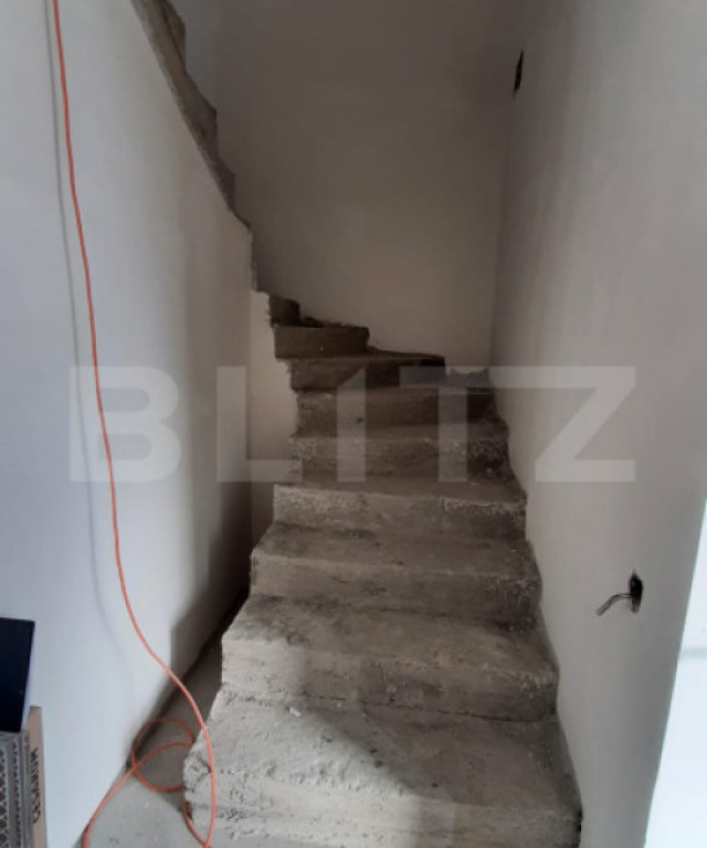 BLITZ oferă spre vânzare o unitate locativă de tip duplex, situată într-o zonă în plină dezvoltare din Chinteni. Proiectul îmbină confortul designului arhitectural cu funcționalitatea modernă, având un regim de înălțime P+E. Proprietatea dispune de o suprafață utilă de 120 mp, amplasată pe un teren de 375 mp. Compartimentare atent realizată: Parter: living cu dinning spațios, bucătărie, spațiu de depozitare, grup sanitar și acces către terasă; Etaj: hol, 3 dormitoare (unul cu baie proprie), 1 grup sanitar și 2 balcoane. Construcția este realizată din cărămidă, izolată termic, asigurând confort termic și durabilitate. Dispune de 2 locuri de parcare. Locuința se predă la stadiul de semifinisat și include următoarele dotări: centrală termică prin condensare, încălzire în pardoseală, instalații electrice și sanitare trase pe poziții, geamuri termopan de calitate, pereți gletuiți și șapă autonivelantă, tencuială exterioară. Este acea locuință excelentă pentru cei ce caută un cămin spațios, într-o zonă cu case moderne. Pentru o experiență completă și mai multe detalii vă așteptăm la o vizionare! Cod ofertă / ID BLITZ: P159913 Id intern: P159913