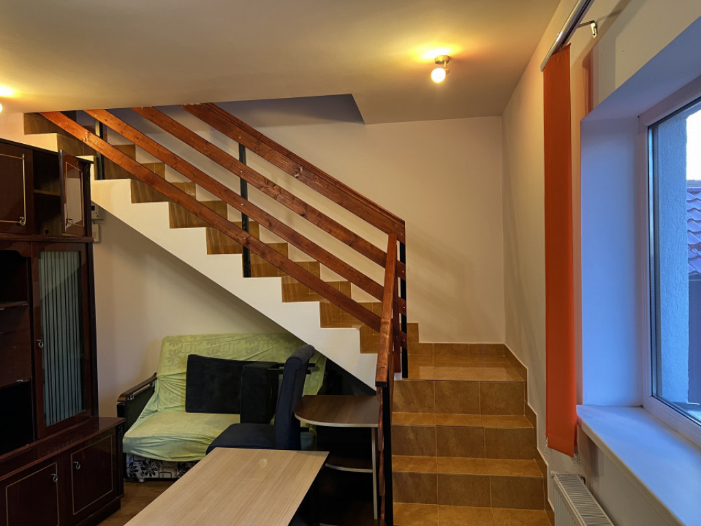 prounem spre inchiriere o casa de inchiriat tip duplex situata in selimbar zona motel dracula compusa din la parter o bucatarie cu camara ,separat living ,baie iar la etaj doua dormitoare spatioase o baie un dressig si doua balcoane, afara se gaseste o terasa acoperita si un grill + garaj . casa este mobilata si utilata ca in poze si se inchiriaza la pretul de 700 euro lunar(pret cu garaj 800 euro lunar) + 1 luna garantie. comision agentie 50 % din prima chirie . pentru detalii si vizionari agent imobiliar radu tel 0751081919 Id intern: P198141