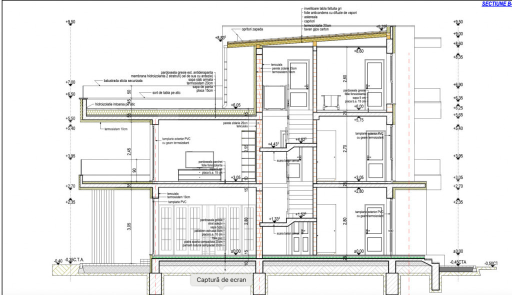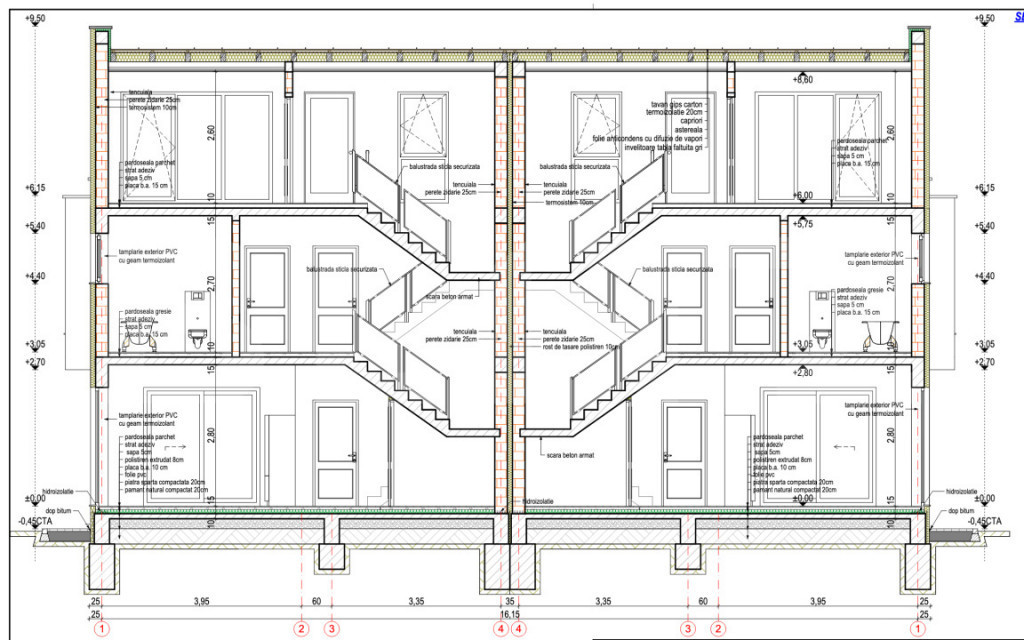 Proprietatea, compusă din două corpuri de casă tip duplex P+2E, face parte dintr-un proiect rezidențial modern, realizat cu atenție la detalii, design arhitectural contemporan și materiale de cea mai bună calitate. Spațiile vitrate ample, compartimentarea inteligentă și priveliștea superbă asupra munților transformă această proprietate într-un spațiu ideal pentru locuință permanentă, casă de vacanță sau investiție turistică exclusivistă (pensiune boutique, închiriere premium). Detalii tehnice și suprafețe -Suprafață utilă: 280 mp + 108 mp terase -Suprafață teren: 538 mp -Suprafață construită: 364 mp -Suprafață desfășurată totală: 457 mp -Suprafață terase parter: 48 mp -Suprafață terase panoramice: 108 mp -Regim de înălțime: P+2E -Acces auto și pietonal separat pentru fiecare unitate Compartimentare pe niveluri (PENTRU FIECARE UNITATE DUPLEX) Parter: -Bucătărie și living open space, spațiu generos și luminos, cu acces direct către terasă -Baie -Hol și debara pentru depozitare -Terasă exterioară perfectă pentru relaxare sau dining Etaj 1: -Dormitor matrimonial cu baie proprie și dressing -Două dormitoare deservite de o baie comună -Hol și două balcoane cu vedere deschisă Etaj 2: -Dormitor spațios cu baie proprie și dressing -Balcon și terasă panoramică cu vedere superbă către Munții Bucegi și Piatra Craiului – o priveliște menită să-ți taie respirația Construcție și finisaje -Materiale de construcție premium, selectate pentru durabilitate, eficiență energetică și confort termic sporit -Încălzire în pardoseală pe toate nivelurile, pentru un confort termic constant și eficiență energetică ridicată -Arhitectură modernă, cu fațadă elegantă alb-gri și accente din lemn natural -Spații vitrate mari pentru lumină naturală și deschidere vizuală -Posibilitate de personalizare interioară în funcție de preferințele viitorului proprietar Beneficii și localizare -Zonă rezidențială liniștită și aerisită, în plină dezvoltare -Acces rapid către Brașov și Aeroportul Internațional Ghimbav -Curte spațioasă și locuri de parcare în incintă -Ideală pentru locuință de familie, casă de vacanță sau pensiune boutique -Vedere panoramică asupra munților, pentru un stil de viață relaxat și rafinat Cod ofertă / ID BLITZ: P156279 Id intern: P156279