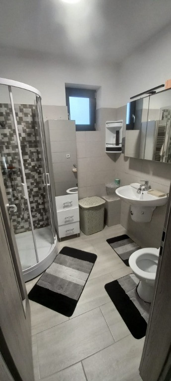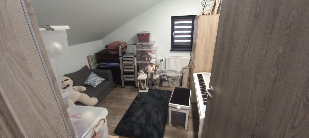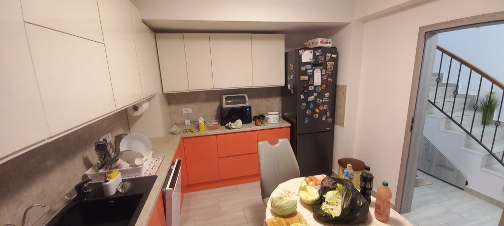 Vand casa tip duplex, an 2021, suprafata la sol 70mp, P+1+M; toate utilitatile sunt disponibile: apa, canalizare, curent, gaze. Este complet mobilata si utilata, cu gust si grad sporit de confort. La parter se afla bucataria (cu centrala termica), baie, sufragerie. Zona de sub scara este amenajata cu multiple spatii de depozitare. La etaj se afla 3 dormitoare. 2 din ele au baie comuna pe etaj, dormitorul matrimonial are baie proprie si iesire la balconul care da spre strada principala. Mansarda este locuibila si prevazuta cu multiple spatii pentru depozitare + canapea extensibila. Exista si o camera care se poate folosi ca birou/dormitor sau tot ca spatiu pentru depozitare. Toata mobila este noua, achizitionata in intervalul 2022-2024. La fel si electrocasnicele mari: masina de spalat rufe, masina de spalat vase incorporata, aragaz cu cuptor incorporat, frigider. In spatele casei este o terasa inchisa, cu suprafata de aprox 20mp. Dotata cu sistem de supraveghere video. Curtea, desi mica, este amenajata (flori diverse. trandafiri, magnolie, liliac, arcada) si intretinuta. Exista o casuta unde se pot depozita unelte/materiale si inca o zona acoperita ce se poate folosi pentru adapostirea bicicletelor. In curte exista un singur loc de parcare si ocazional se poate parca si la poarta (strada este cu sens unic). Poarta este prevazuta cu sistem de automatizare (chei + deschidere prin apel telefonic). Pret: 210.000 eur.