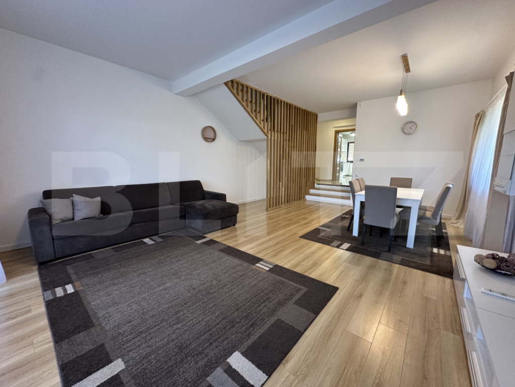 BLITZ ofera spre vânzare o casă tip duplex situată într-o zonă apreciată din cartierul Europa, cu acces facil către principalele artere ale orașului. Proprietatea oferă intimitate, spațiu generos și un ambient ideal pentru o familie. Imobilul are suprafața utilă de aproximativ 136 mp și este dispus pe P+E, fiind compartimentat eficient si foarte modern: PARTER: - hol acces - living spațios - bucătărie decomandată cu cămară - baie In plus, dispune de o terasă acoperită cu acces spre curtea din spatele casei. ETAJ: - 3 dormitoare confortabile dintre care u dormitor matrimonial cu balcon, baie si dressing propriu - 2 băi - 3 dressinguri Proprietatea este amplasată pe un teren de aproximativ 310 mp, iar curtea este frumos amenajată cu gazon si copaci ornamentali. Casa se vinde complet mobilată și utilată, fiind pregătită pentru mutare imediată. Vă stăm cu interes la dispoziție, pentru informații suplimentare sau programarea unei vizionări! Cod ofertă / ID BLITZ: P167025 Id intern: P167025
