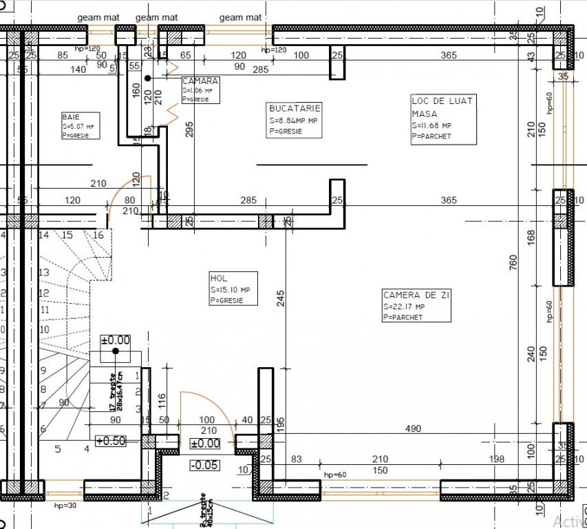 Persoana Fizica ofer spre vânzare casă tip duplex P+E situat într-un ansamblu privat finalizat (in curs de intabulare) în Florești str.Avram Iancu nr. 263. Ansamblul construit pe o suprafata de 2100 mp de teren este compus din 3 unitati tip dulpex si o casa individuala este situat in centrul Florestiului dar cu toate acestea unitatea de vanzare fiind situata in partea din spate a ansamblului are parte de liniste si mai mult spatiu. Imobilele sunt construite din materiale de calitate sunt racordate la toate utilitatile si fiecare imobil detine 2 locuri de parcare. Parterul este compus din hol ,living cu loc de luat masa, 1 bucătărie separată si 1 baie iar etajul este compus din 3 camere, 2 bai, 1 hol și un balcon. Casa dispune de o suprafață utilă de 124mp plus 5 mp balcon ,teren aferent 260 mp plus aprox. 90 mp cotă parte din drum acces. Casa se vinde la stadiul de semifinisat cu geamuri termopan, usă metal, încălzire în pardoseală la parter și etaj, centrală termică individuală, pereții gletuiți, instalații pe poziții iar curtea exterioară amenajată. Pret 229000 eur