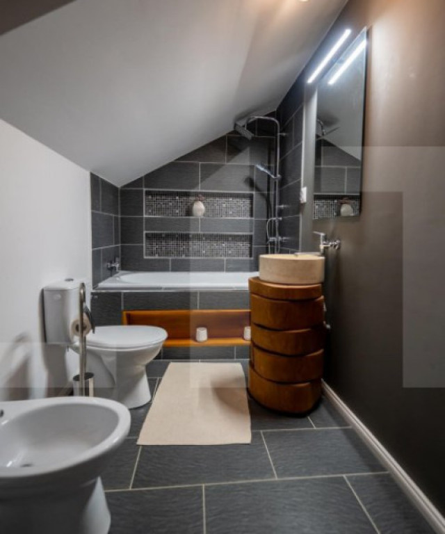 Blitz va propune o proprietate premium, finalizată în iulie 2024, Sfântu Gheorghe. Casa se află pe un teren generos de 1.577 mp, complet amenajat, cu alei dalate, zonă verde cu gazon și arbori ornamentali, sistem automat de irigare, poartă cu telecomandă și sistem de acces securizat cu supraveghere video și senzori de mișcare. Construcția dispune de un regim parter + mansardă, cu o suprafață totală de 339,66 mp (256,50 mp parter și 83,16 mp mansardă) și este racordată la toate utilitățile. Finisajele sunt de înaltă calitate: marmură, travertin, quartz, mozaic și tencuială decorativă. Încălzirea este prin pardoseală la parter și cu ventiloconvectoare la mansardă, asigurată de o centrală geotermală. Structura este realizată din cărămidă cu izolație din vată bazaltică, iar tâmplăria termoizolantă cu geam triplu stratificat oferă un confort termic superior și o eficiență energetică ridicată. Locuința este eficient compartimentată, oferind un parter cu living și bucătărie open-space, dormitor matrimonial cu baie și dressing propriu, spălătorie, baie de serviciu și cameră tehnică, iar la mansardă, două dormitoare, birou, baie, dressing și spațiu de depozitare. Terasa acoperită completează spațiul, oferind un cadru ideal pentru relaxare în aer liber. Proprietatea dispune și de parcare acoperită pentru două autoturisme. Această proprietate este ideală pentru o familie care își dorește confort, siguranță și intimitate într-o zonă liniștită, dar foarte bine conectată cu orașul. Comision 0% pentru cumpărător. Pentru vizionare sau detalii suplimentare, vă rugăm să ne contactați. Cod ofertă / ID BLITZ: P145266 Id intern: P145266