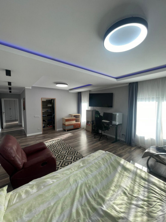 Blitz vă prezintă o locuință ultramodernă, finalizată în 2025, proiectată pentru confort, eficiență și eleganță. Casa are o suprafață utilă totală de 252 mp, fiind dispusă pe două niveluri, cu subsol generos (77 mp) și parter spațios (150 mp), la care se adaugă terase însumând 40 mp, perfecte pentru relaxare în aer liber. Construcția este realizată integral din cărămidă, beneficiind de o izolație exterioară de 10 cm și acoperiș din țiglă Bramak, garantând durabilitate și eficiență energetică. ???? Detalii tehnice și dotări moderne: Geamuri tripan Rehau – izolare fonică și termică excelentă; Încălzire în pardoseală pe întreaga suprafață; Șemineu pe lemne care încălzește livingul și un dormitor, cu posibilitate de alimentare și din exterior (terasă); Sistem de supraveghere video și alarmă antiefracție; Porți electrice cu telecomandă; Două locuri de parcare acoperite; Sistem de colectare a apei pluviale cu rezervor de acumulare, util pentru irigații; ???? Compartimentare inteligentă: Parter (150 mp): 4 camere spațioase, dintre care 2 dormitoare cu baie proprie și dressing, living cu șemineu, bucătărie modernă și zonă de dining; Subsol (77 mp): 3 camere ideale pentru spații tehnice, depozitare, sală de fitness sau hobby room. Casa este foarte bine compartimentată, gândită pentru un stil de viață confortabil și funcțional. Spațiile vitrate mari aduc multă lumină naturală, iar finisajele de ultimă generație creează o atmosferă rafinată și primitoare. ???? Suprafețe și teren: Suprafață utilă totală: 252 mp Suprafață teren: 654 mp Terase: 40 mp Această proprietate reprezintă o alegere ideală pentru cei care caută o casă modernă, eficientă și elegantă, construită cu materiale de cea mai bună calitate și cu atenție la fiecare detaliu. Cod ofertă / ID BLITZ: P157535 Id intern: P157535