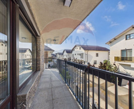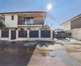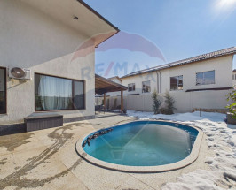 Exteriorul oferă o zonă premium de relaxare: terasă placată cu granit C7 (aprox. 130 mp), piscină încălzită cu pompă de căldură și sistem automat de dozare clor, terasă acoperită cu zonă lounge și TV, utilități pregătite pentru bucătărie de vară, grădină amenajată cu peste 18 tipuri de plante, iluminat exterior ambiental, 4 magazii de depozitare, parcare pentru 2 mașini în curte, poartă auto cu telecomandă și aplicație mobilă, poartă pietonală cu interfon, video-interfon și acces cu amprentă/cod.