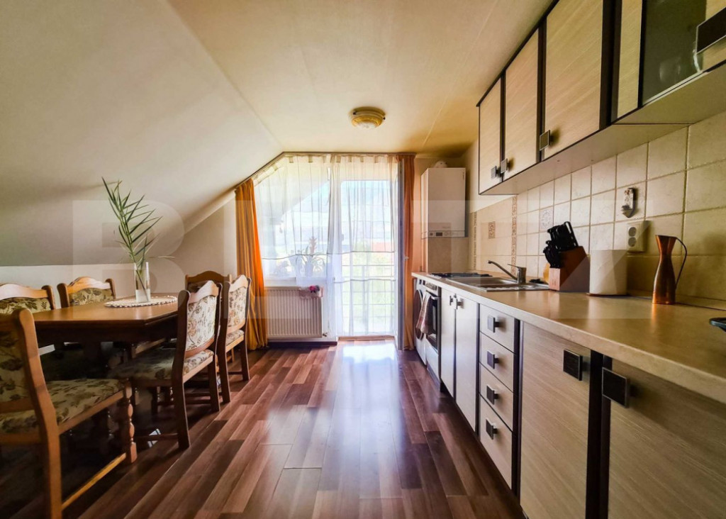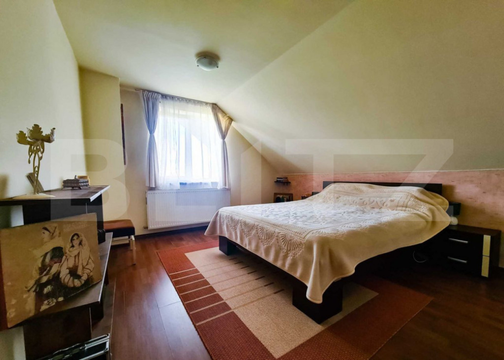 Blitz va prezinta o casă unifamilială 9 camere, teren 560 mp, 7 locuri de parcare – ideală pentru locuință personală sau transformare în pensiune Descriere generală Casă unifamilială compartimentată în 3 apartamente separate, situată într-o zonă liniștită, la 5 minute de mijloace de transport, 2 hipermarketuri și un magazin de bricolaj. Farmacia, dispensarul și cabinetul veterinar se află la 8 minute distanță. Poziționarea este avantajoasă și pentru cazarea turiștilor, fiind la 10-12 minute de aeroport. Casa este situată la intersecția cartierelor Mărăști și Someșeni din Cluj-Napoca. Specificații proprietate: Suprafață construită desfășurată: 360 mp (S+P+1+M) Suprafață utilă: 202 mp Teren: 560 mp, măsurați Front: 13,65 m An construcție: 1996, structură din beton cu pereți de cărămidă de 30 cm, termoizolați cu polistiren de 5 cm, acoperiș din țiglă termoizolat Compartimentare Fiecare apartament are: Parter: hol de acces, 2 camere, baie, bucătărie, garaj și o terasă generoasă orientată spre curtea din spate Etaj 1 și Mansardă: hol de acces, 3 camere, bucătărie, baie; fiecare nivel dispune de 2 balcoane (la bucătărie și living/cameră) Pivniță: 2 încăperi cu acces din curtea interioară, spațiu pentru depozitare alimente și cameră tehnică cu centrală pe lemne Facilități curte și parcare Locuri de parcare: 6-7 locuri, în curtea din spate (4 mașini) și în fața casei (2 mașini) Gradină: foișor spațios, fântână, zonă cu gazon, pomi fructiferi și viță de vie Dotări și utilități Încălzire: centrală proprie, calorifere și centrală pe lemne (opțional) Contorizare: contoare individuale pentru apă, gaz și curent Utilități: apă, canalizare, curent, gaz Avantaje și potențial Posibilitate de extindere până la 505 mp utili (POT maxim 35%, CUT maxim 0.9) Acces: Fiecare apartament dispune de intrare separată, prin scară exterioară Structura rezistentă: realizată din materiale de calitate, finisaje bine executate pentru uz personal Utilizare versatilă: potrivită pentru locuință personală sau transformare în pensiune, datorită proximității de aeroport și accesibilității zonei Cod ofertă / ID BLITZ: P160995 Id intern: P160995