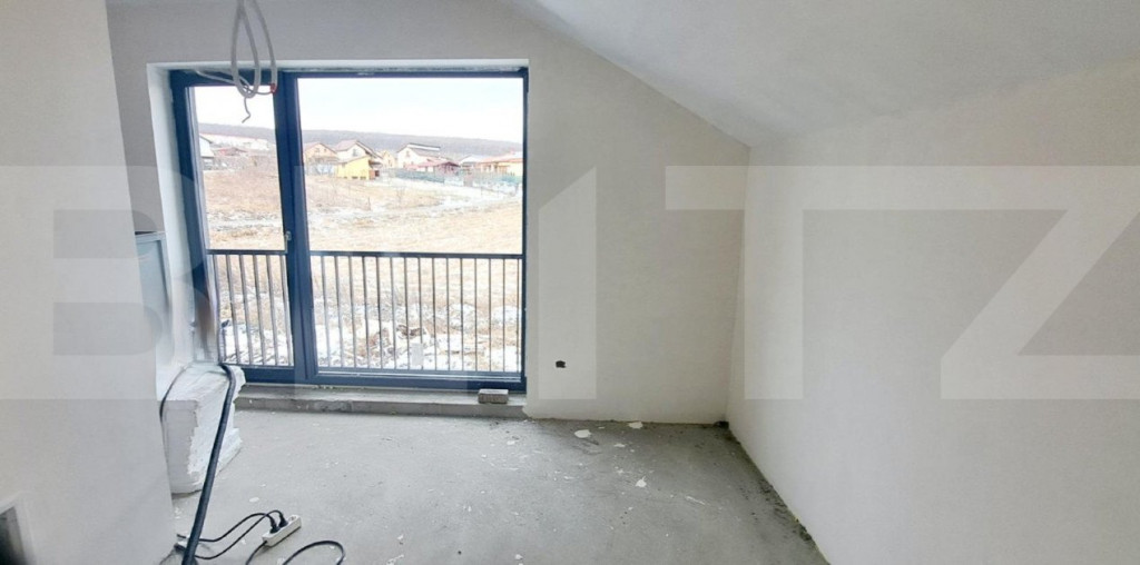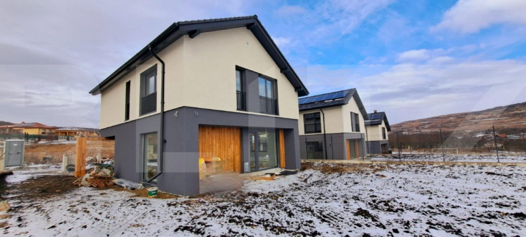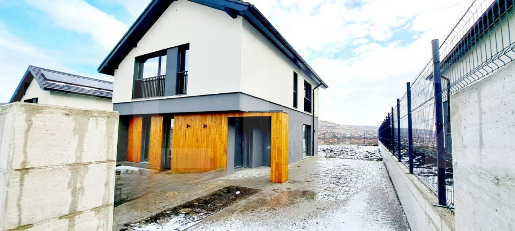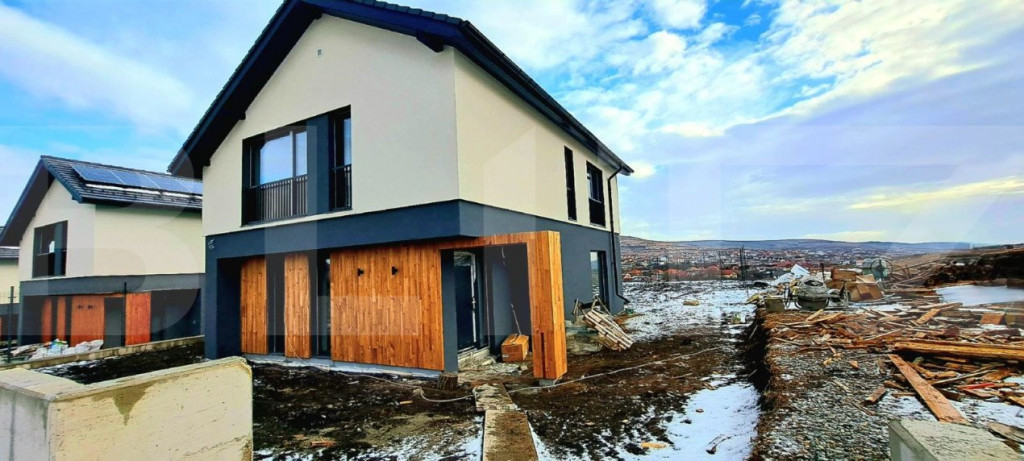 Blitz ofera spre vanzare casa cu consum de energie aproape zero, situata in Chinteni. Suprafata utila a casei este de cca 118mp,iar terenul aferent este de 524mp.Compartimentarea este dupa cum urmeaza la parter avem un hol generos, baie, camera tehnica, camara, bucatarie, loc de luat masa si living, iar la etaj doua dormitoare, baie si un dormitor matrimonial, cu dressing si baie proprie. Interiorul se preda la nivel semifinisat cu peretii tencuiti si gletuiti, instalatiile electrice trase la pozitie, in bai si in bucatarie vor fi trase la pozitie toate utilitatile (apa calda, apa rece, canalizare).Geamurile sunt cu profile performante, pachet cu 3 foi de sticla cu bagheta calda, iar montarea geamurilor se face cu folie izolatoare atat la interior, cat si la exterior. Incalzirea se face prin pardoseala, cu ajutorul unei pompe de caldura Ferroli de 8 kw, iar pachetul de 5.28 kw de panouri fotovoltaice montat va reduce costul energiei electrice utilizate de pompa de caldura pentru incalzirea casei spre zero. La exterior casele se predau finisate complet, cu locul de parcare aferent fiecarei case pavat, le fel cu trotuarele de acces si trotuarul de langa casa. Portile de acces auto si pietonal vor fi facute din metal vopsit in camp eletrostatic. Gardurile de la strada se vor face pe soclu de beton, din elemente de beton prefabricat, urmand ca gardurile interioare sa fie facute din plasa de sarma intinsa pe stalpi metalici. Gradina va fi amenajata cu gazon. Zona are expunere sudica si priveliste frumoasa asupra vecinatatilor. Mai sunt disponibile 2 case ,care vor fi construite in 2024. Cod ofertă / ID BLITZ: P99251 Id intern: P99251