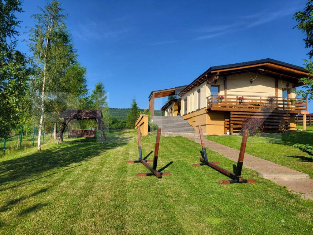 Blitz va prezinta o proprietate excepțională situată în frumoasa zonă Paltinoasa, ideală pentru cei care doresc să se relaxeze într-un cadru natural și să beneficieze de toate facilitățile moderne, in scop recreational sau pentru investitie. Această cabană de vacanță impresionantă, cu o suprafață utilă de 145 de metri pătrați, este amplasată pe un teren generos de 5000 de metri pătrați, oferindu-vă spațiu amplu pentru recreere și intimitate. Proprietatea dispune de 4 camere spațioase, fiecare dotată cu pat matrimonial și baie proprie, asigurând astfel confort și intimitate pentru toți oaspeții. Fiecare cameră este amenajată cu atenție la detalii, combinând stilul rustic cu elemente moderne pentru a crea un ambient primitor și elegant. În plus, există o cameră suplimentară care oferă două paturi matrimoniale și, desigur, o baie proprie, perfectă pentru familiile numeroase sau pentru grupurile de prieteni. Bucătăria este complet utilată și echipată cu toate aparatele necesare, pregătită să satisfacă toate nevoile dumneavoastră culinare. Zona de luat masa, adiacentă bucătăriei, este ideală pentru mesele de familie sau pentru cinele festive, oferind un spațiu confortabil și prietenos. Salonul/livingul este locul perfect pentru relaxare, dotat cu mobilier confortabil și o atmosferă caldă. Această proprietate beneficiază de toate utilitățile necesare pentru un sejur confortabil: încălzire centrală prin centrală pe peleți, fantana cu hidrofor, fosa septica, conexiune Wi-Fi pentru a rămâne conectat la lume, și multe altele. Exteriorul este la fel de impresionant ca și interiorul. Curtea vastă include un foișor minunat, ideal pentru a lua masa în aer liber sau pentru a petrece serile cu prietenii. Există și un grătar pentru gătit în aer liber, livada pe rod, spatiu verde. Pentru cei mici, cabana oferă o trambulină, iar pentru amatorii de sport, există o masă de tenis. Această cabană din Paltinoasa nu doar că oferă un refugiu confortabil și luxos în mijlocul naturii, dar și o multitudine de facilități care să vă facă șederea cât mai plăcută și lipsită de griji. Situată într-o zonă excelentă, cu peisaje pitorești și liniște deplină, această proprietate este locul ideal pentru vacanțele dumneavoastră. Nu ratați ocazia de a descoperi acest colț de rai! Contactați-mă pentru mai multe detalii și pentru a programa o vizionare. Această cabană poate deveni refugiu dumneavoastră perfect în mijlocul naturii. Cod ofertă / ID BLITZ: P129234 Id intern: P129234