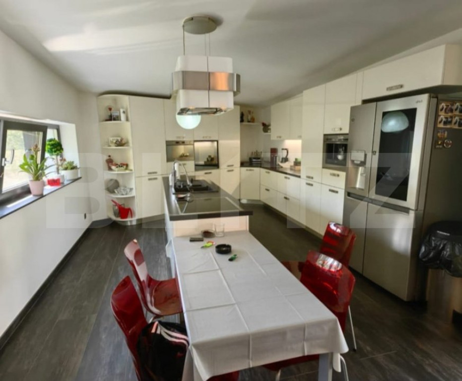 De vanzare casa individuala cu 5 camere, anexa si 1.000 mp de teren. Imobilul este construit din caramida, izolat termic la exterior cu polistiren de 15 cm si compatimentat astfel: Parter; hol, birou, bucatarie cu dining, living, dormitor matrimonial cu baie si dressing propriu, camera tehnica si baie de serviciu. Etaj; 2 dormitoare si baie. Casa benficiaza de curent trifazic, panouri fotovoltaice, incalzire in pardoseala(electrica), piscina, curte amenajata, parcare acoperita pentru 2 masini si o anexa de 54 mp compusa din: antreu, bucatarie cu loc de servit masa, spatiu de depozitare si baie. Pentru mai multe detalii nu ezitati sa ne contactati. Cod ofertă / ID BLITZ: P143564 Id intern: P143564