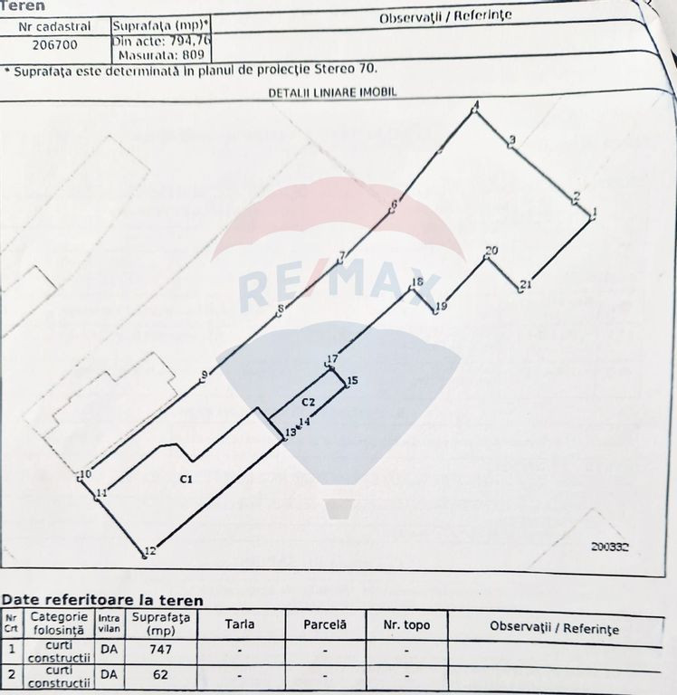 Suprafață teren 809 m²