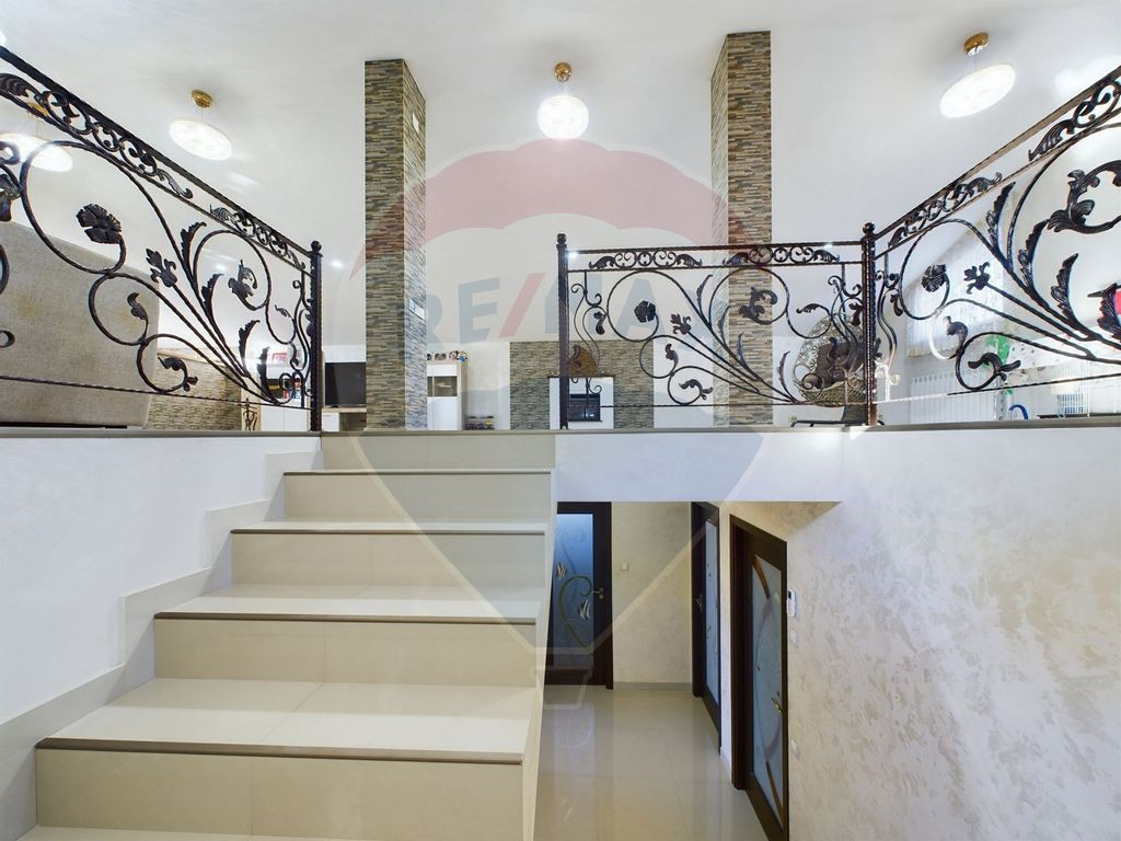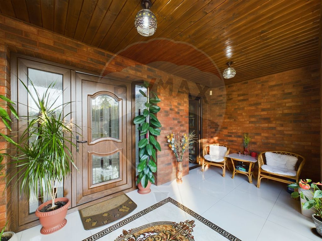 Aceasta casa impresionanta cu 5 camere si o mansarda spatioasa este ideala pentru cei care cauta confort, spatiu si functionalitate. Situata pe o proprietate generoasa, locuinta ofera un stil de viata modern si adaptabil pentru diferite nevoi si activitati. Exteriorul intampina cu o curte frontala foarte spatioasa, care include atat un loc de parcare pentru doua masini, cat si un spatiu verde atragator cu un sistem de irigare atent monitorizat, ingrijit in detaliu. In partea stanga fata de intrare se afla o terasa perfecta pentru relaxare, unde te poti bucura de aer curat si momente de liniste. Accesul in curte se face prin porti electrice, iar intreaga proprietate este monitorizata prin camere profesionale de supraveghere si echipata cu un sistem anti-efractie de ultima generatie. Parterul casei include un hol primitor, o camera tehnica cu spatiu de depozitare in care se afla si Centrala pe gaz Viessmann de o putere 45KW, un living foarte generos dotat cu lumini ambientale, o bucatarie moderna si complet echipata, un dormitor destinat oaspetilor si o baie. Incalzirea la acest nivel se face prin pardoseala, asigurand confort termic in toata locuinta.(102.74mp) Etajul 1 gazduieste doua dormitoare luminoase care impart o baie comuna, dar si un dormitor matrimonial cu baie privata si balcon propriu, oferind intimitate si o oaza personala de relaxare.(101.65mp) Mansarda este extrem de spatioasa si versatila, perfecta pentru organizarea petrecerilor, activitatilor sportive sau de relaxare, in functie de preferinte. Aceasta este dotata cu un bar, o zona de relaxare confortabila, un grup sanitar si un balcon cu priveliste panoramica, adaugand un plus de lux si functionalitate.(105.38mp) Curtea din spate este destinata exclusiv relaxarii si este dotata cu un loc special pentru gratar si un spatiu de depozitare pentru ustensilele specifice. Accesul in aceasta zona se poate face fie direct din casa, fie printr-un culoar care leaga curtea din fata de cea din spate, oferind astfel multiple optiuni de circulatie. In proximitatea imobilului gasim magazine alimentare precum Mega Image, mini market-uri, diverse restaurante, sectia de politie, spalatorie auto, scoala internationala etc. Transportul in comun este asigurat prin linia de autobuz 103, situata la doar 3 minute de mers pe jos care faciliteaza accesul catre centrul orasului. Aceasta proprietate este perfecta pentru cei care cauta un loc elegant si confortabil, dotat cu toate facilitatile moderne, fiind ideala atat pentru locuit, cat si pentru socializare si recreere. Pentru mai multe detalii, nu ezitati sa ma contactati! Tur Virtual: https://tour.giraffe360.com/a667a03fd0a146d48db139764829d05d/