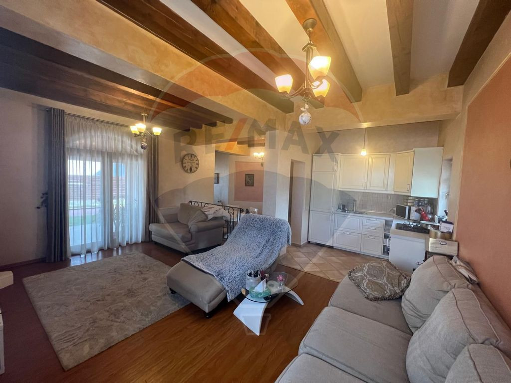 EXCLUSIVITATE! Comision 0% la cumparator! Va propun spre vanzare o casa cocheta in localitatea Golesti, situata intr un complex privat ce insumeaza 10 proprietati. Casa P+M, constructie la sol 123mp, dispune de apa curenta, canalizare, curent electric, centrala pe peleti si se vinde mobilata si utilata cum va este prezentata in imagini. Pentru mai multe detalii, va stau cu drag la dispozitie.