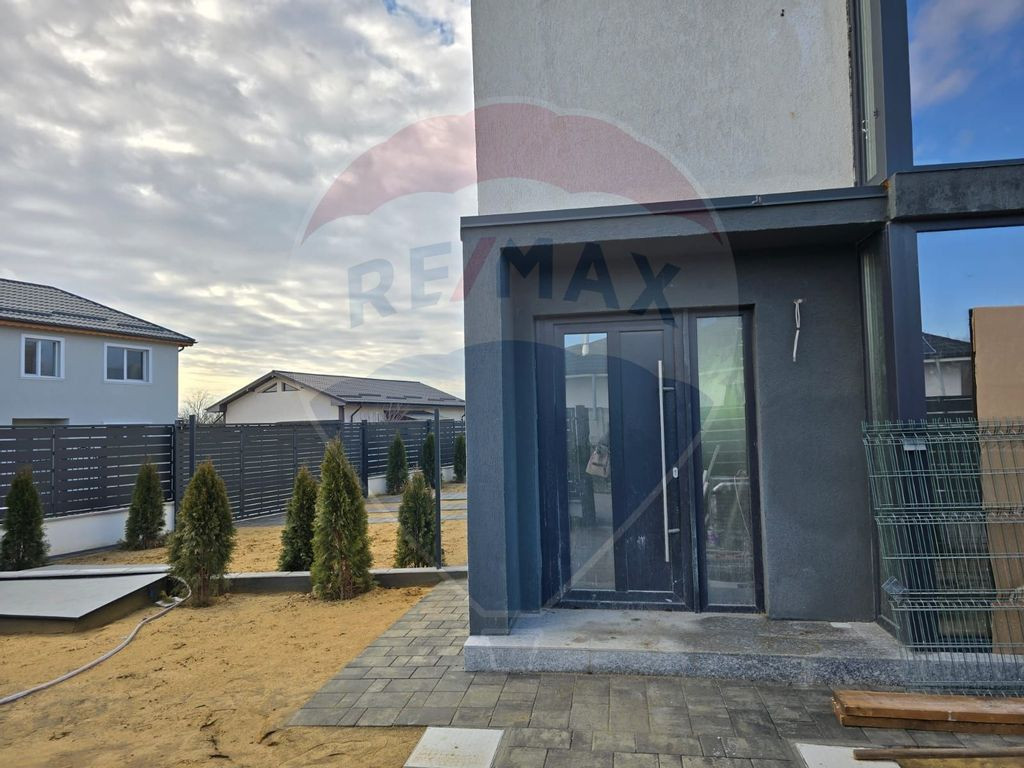este pregătită pentru a fi locuită imediat. Curtea este înconjurată de arbori ornamentali de specia tuia, iar gazonul adaugă un plus de verdeață.
