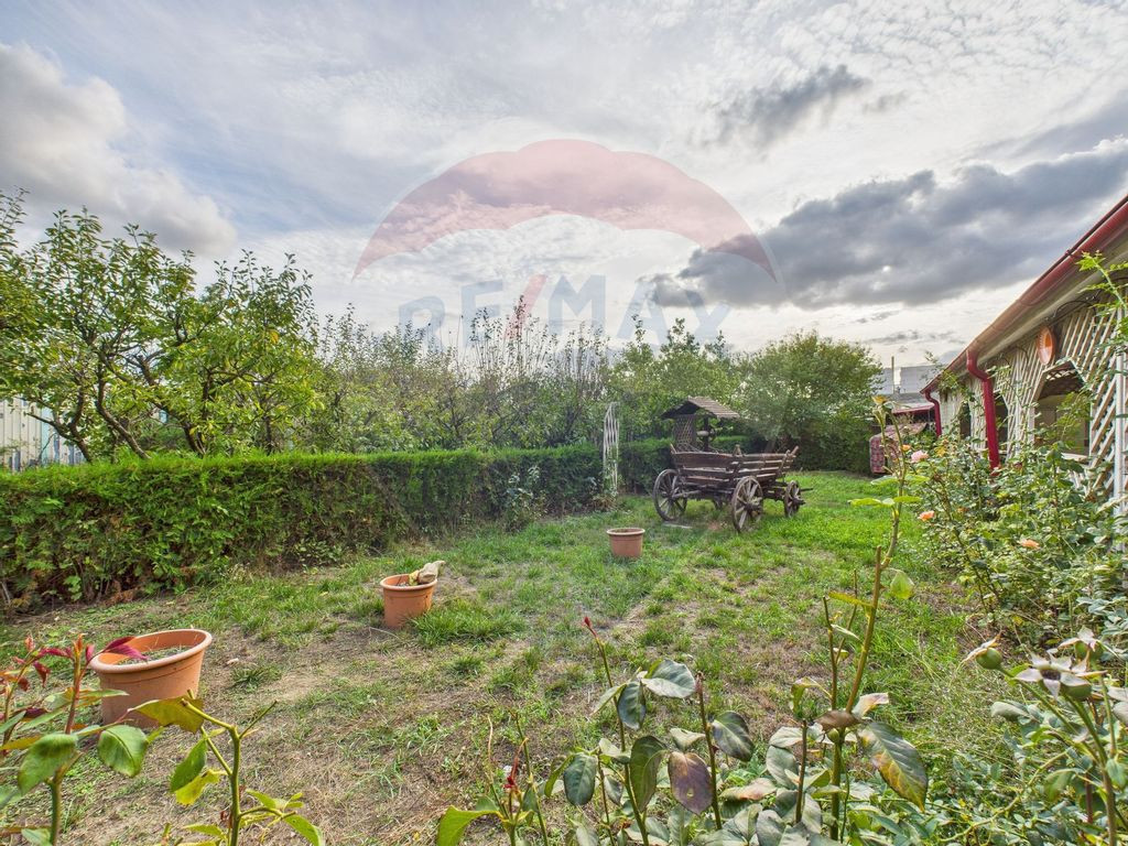 Grădină de 841 mp, cu viță de vie și pomi fructiferi în rod (pruni, piersici) și un grătar din cărămidă amplasat pe o terasa mare, complet amenajată;