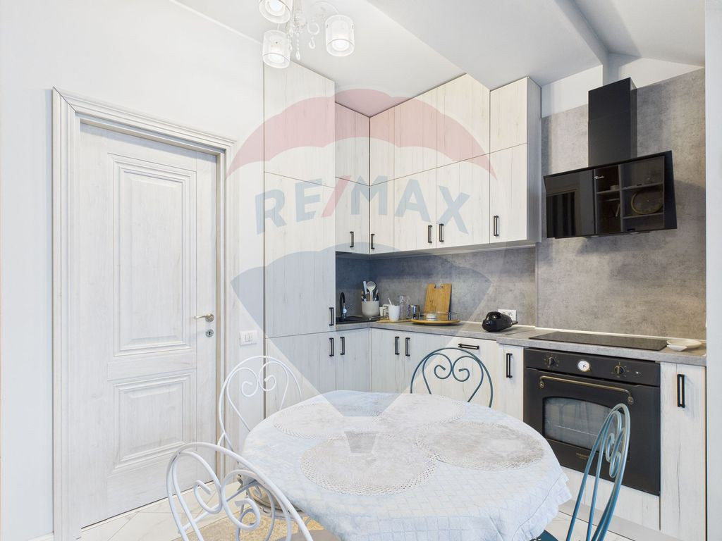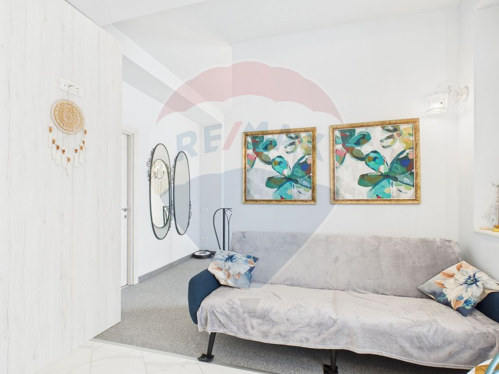 Vă propun spre vânzare o vilă modernă și complet renovată, situată în stațiunea Neptun, pe Aleea Steaguri, una dintre cele mai bune poziții, la doar câteva minute de mers pe jos de plajă. Proprietatea are o suprafață construită de 120 mp și o suprafață utilă de 100 mp, fiind amplasată pe un teren de 60 mp (terenul de sub construcție). Vila a fost edificată în 2010 și renovată integral în 2022, de la structura de rezistență. Beneficiază de termoizolație, hidroizolație și fonoizolație, ceea ce asigură un confort excelent pe tot parcursul anului. Parterul este configurat pentru confort și funcționalitate: • living spațios și luminos, ideal pentru relaxare; • bucătărie open-space cu zonă de dining, complet utilată; • un dormitor confortabil; • o baie modernă; • hol de acces și scara interioară elegantă. Etajul oferă un spațiu versatil, perfect pentru familie sau pentru închiriere: • două dormitoare luminoase; • living cu chicinetă, care poate funcționa ca spațiu semi-independent pentru musafiri sau pentru regim hotelier; • o baie suplimentară; • palier generos, pus în valoare de oglinzi decorative și detalii metalice rafinate. Chicineta de la etaj permite împărțirea imobilului în două zone distincte, un avantaj important pentru cei care doresc să optimizeze proprietatea pentru închiriere în regim hotelier. Designul interior este modern, luminos și echilibrat, cu finisaje de calitate și un stil contemporan. Exteriorul impresionează prin arhitectura sa modernistă, linii curate și elemente vitrate care conferă proprietății un aer elegant. Avantaje majore: • Localizare premium: Aleea Steaguri, foarte aproape de plajă • 120 mp construiți / 100 mp utili • Living + chicinetă la etaj — ideal pentru două familii sau unități de închiriere • Construită în 2010, renovată capital în 2022 • Termo, hidro și fonoizolată integral • 3 dormitoare, 2 livinguri, 2 băi • Ideală pentru locuire, casă de vacanță sau investiție cu randament ridicat Pentru vizionari sau tur virtual aștept sa ma contactați.