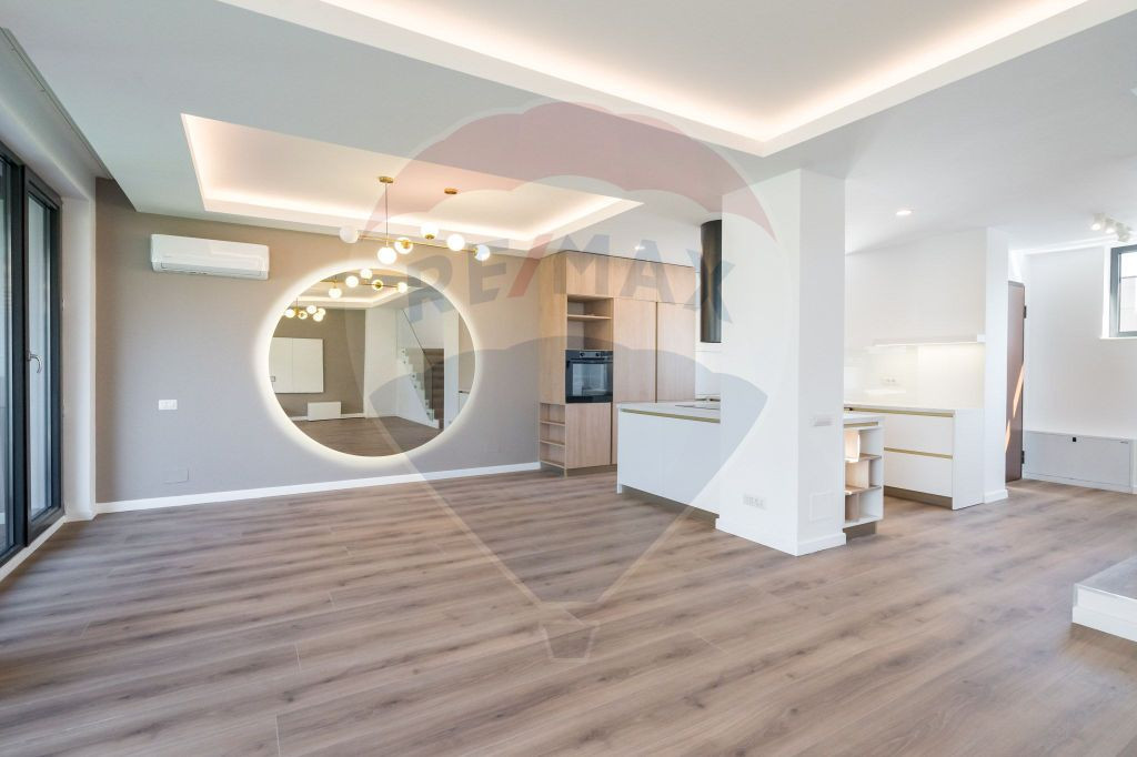 Această casă nouă cu 5 camere și 4 băi este situată într-o zonă exclusivistă din Pipera, în apropierea complexului rezidențial Jolie Ville. Cu un design modern și finisaje de înaltă calitate, această proprietate oferă un spațiu luxos și confortabil pentru o familie sau pentru cei care caută un stil de viață rafinat într-o locație privilegiată. Proprietatea se inchiriaza mobilata complet. La intrarea în casă, veți fi întâmpinați de un hol generos, care se deschide către o zonă de living spațioasă și luminoasă. Ferestrele mari permit luminii naturale să inunde interiorul și oferă o panoramă îmbietoare a împrejurimilor Cele 5 camere sunt spațioase și luminoase, oferind o oază de liniște și confort. Etajul 1 beneficiaza de doua bai, iar finisajele de calitate superioară completează atmosfera luxoasă. Curtea exterioară oferă un spațiu generos pentru relaxare și divertisment în aer liber. Grădina poate fi amenajată cu zone de lounge, oferind oaza perfectă de refugiu și recreere. Localizată în apropierea complexului rezidențial Jolie Ville, această proprietate oferă acces ușor la facilități precum restaurante, magazine, spa-uri și terenuri de sport, toate contribuind la un stil de viață convenabil și activ. În concluzie, această casă nouă cu 5 camere și 4 băi în Pipera este o oportunitate ideală pentru cei care caută luxul și confortul într-o locație de prestigiu. Cu un design modern, finisaje de înaltă calitate și o varietate de facilități, această proprietate reprezintă un cămin perfect pentru a vă bucura de stilul de viață exclusivist pe care vi-l doriți.