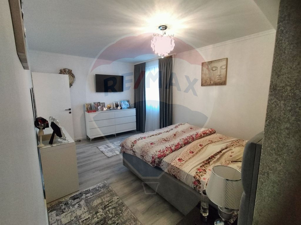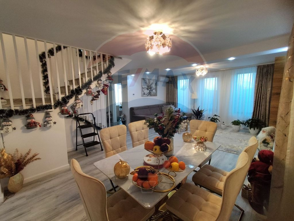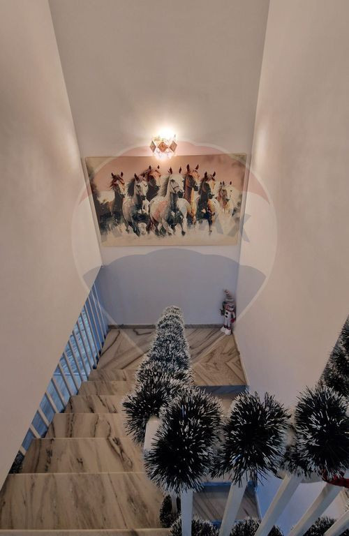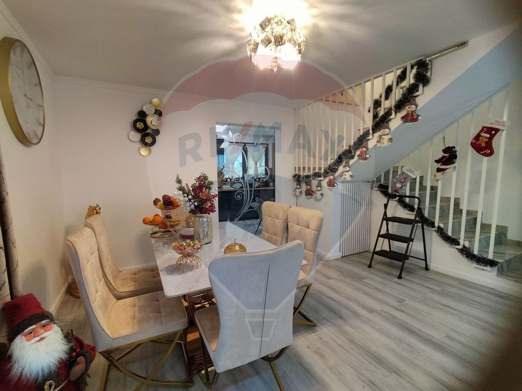 Casă 5 camere Ștefăneștii de Sus – complet mobilată și utilată, teren 500 mp Descoperiți o proprietate specială, concepută pentru un stil de viață elegant și confortabil, situată într-o zonă în plină dezvoltare din Ștefăneștii de Sus, la doar 2 minute de una dintre intrările în complexul rezidential Cosmopolis și de accesul către Autostrada București–Ploiești. Poziționarea strategică permite conexiuni rapide către Capitală, cartierul Colentina aflându-se la aproximativ 10 km. Vila este amplasată pe un teren generos de 500 mp și are regim de înălțime Parter + Etaj, cu o suprafață utilă de 155 mp, 190 mp construiți și amprentă la sol de 95 mp. Proprietatea se vinde exact ca în poze, fiind complet mobilată și utilată, atent amenajată, gata pentru mutare imediată, fără investiții suplimentare. Compartimentare: Parterul impresionează prin livingul generos cu zonă de dining (aprox. 40 mp), un spațiu luminos și elegant, ideal pentru relaxare și socializare. Bucătăria este separată și complet echipată, beneficiind de cămară și beci, detalii rare și extrem de apreciate. Tot la parter se regăsesc un birou perfect pentru activități de tip home office, un grup sanitar și două holuri ce delimitează armonios zonele funcționale. Cele 4 căi de acces oferă un plus de confort și flexibilitate. . Etajul este dedicat zonei private și oferă un dormitor matrimonial spațios, cu dressing și baie proprie, alte doua dormitoare cu acces către un balcon comun, un grup sanitar suplimentar și acces către pod, utilizabil ca spațiu de depozitare sau pentru amenajări viitoare. Terenul permite amenajarea unei grădini, terase sau zone de relaxare. Proprietatea se remarcă prin spații generoase, compartimentare practică și poziționare excelentă față de puncte de interes, școli, centre comerciale și autostradă. Proprietatea este ideală pentru o familie care își dorește liniște, spațiu și acces rapid către București, îmbinând avantajele unei zone aerisite cu proximitatea față de facilități urbane importante. O casă solidă, bine compartimentată, cu teren generos și poziționare excelentă, pregătită să devină „acasă”. Contactează-ne pentru detalii complete și programarea unei vizionări.