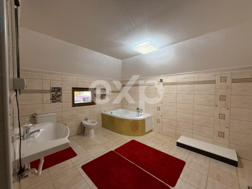 Această proprietate impresionantă oferă o experiență de locuire exclusivistă, îmbinând arhitectura modernă cu detalii sofisticate și finisaje realizate la cele mai înalte standarde. Situată în Cartierul Nou din comuna Sascut, județul Bacău, casa emană eleganță și echilibru, fiind ideală pentru cei care apreciază calitatea, spațiul și designul rafinat. Locuința dispune de o suprafață utilă de 182 mp, amplasată pe un teren generos de 1.019 mp, oferind atât intimitate, cât și posibilități extinse de amenajare exterioară. Proprietatea este structurată pe P+M+Pod și cuprinde 5 camere generoase, proiectate pentru confortul întregii familii. La parter se află livingul amplu, inundat de lumină naturală, care se deschide către zona de relaxare și terasa de 37 mp, precum și un dormitor bine poziționat. La etaj se găsesc 3 dormitoare spațioase, fiecare cu terasă proprie, oferind o priveliște liniștită și un plus de intimitate. Fiecare nivel este completat de băi moderne, dotate cu obiecte sanitare premium, iar finisajele interioare sunt atent alese pentru a reflecta atenția pentru detalii. Casa este complet utilată și finisată, oferind tot confortul unei locuințe moderne: centrală termică Ariston de 50 kW, înălțime utilă de 3 metri, încălzire individuală, sistem de supraveghere video 24/7 cu acces din aplicație, porți automatizate controlabile de la distanță, uși din lemn masiv și mobilier realizat la comandă. Proprietatea este racordată la gaz, curent, apă și canalizare, iar curtea este împrejmuită cu gard din BCA pe întreaga suprafață. Construcția este solidă și durabilă, realizată exclusiv din materiale premium: cărămidă Porotherm 25, țiglă metalică Bilka 0.5 mm și oțel beton B500C, oferind o casă sigură, eficientă și construită pentru generații. Pentru alte detalii sau stabilirea unei vizionări, vă stau la dispoziție cu drag. Id intern: EXP1039