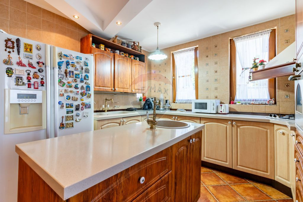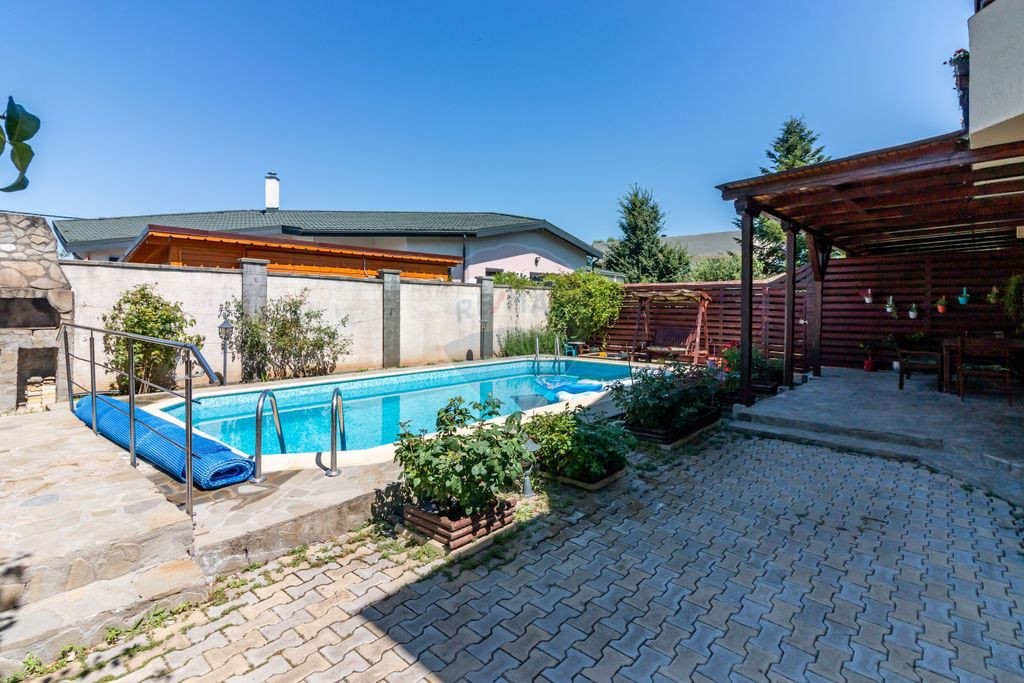Casa de vanzare in Corbeanca, pe strada Laguna Albastra, langa lac, intr-o zona rezidentiala, cu acces privat din strada principala. Cu o fundatie solida din beton armat si finisaje de inalta calitate in intreaga locuinta, proprietatea este conceputa pentru viata contemporana. Explorati spatiile exterioare cu gradini bine ingrijite, sistem de irigatii, piscina, panouri fotovoltaice, terasa generoasa si multa liniste. Aceasta locuinta nu doar ca dispune de o configurare atenta, ci si de proximitatea fata de diverse facilitati si optiuni de recreere pentru un stil de viata convenabil si vibrant. Compartimentare: -parter: hol de acces, living + zona de dinning, bucatarie, baie, dormitor/birou. -etaj 1: hol de acces, trei dormitoare si doua bai. Dormitorul matrimonial cu baie si dressing proprii. -pod inalt pt depozitare. Detalii tehnice: Structura formata din stalpi si grinzi de beton, caramida portanta, fundatie izolata, casa izolata cu polistiren de 8 cm, acoperis Gerard (tigla metalica acoperita cu roca vulcanica), ferestre Veka, împamântare, paratrasnet, instalatie electrica pe cupru, instalatia de incalzire aparenta si mascata, nu in pardoseala ca sa se poata interveni daca este cazul fara sa se afecteze pardoseala, calorifere curatate in interior cand a fost schimbata centrala, centrala noua, inteligenta in condesatie Ariston 32 kw cu 2 boilere incorporate a cate 20 l, piscina din beton special pt bazine de inot, tencuita si izolata cu materiale speciale so anume ceramica. Pisci a este incalzita si dotata cu schimbator de caldura si centrala termica, totul automatizat. De asemena piscina are si prelata izotermica care incalzeste si mentine temperatura apei, de asemenea dispune si de sistem de recirculare si filtrare a apei automat cu functie de aspirare. Sistem fotovoltaic de 400 kw, prosumator. Curtea dispune de sistem de irigatie automat, porti automate, sistem de alarma conectat la Cyber Security, nu in interiorul casei ci pe garduri cu bariere cu infrarosu astfel incat curtea este protejata (costul este de 136 lei/luna). De asemenea proprietatea beneficieaza si de puț de mare adincime (70 m), care deserveste piscina, casuta mica si irigatia. Terasa, soclul caselor, gardul, treptele exterioare sunt placate cu piatra naturala de râu. Finisaje interioare: usa din metal la intrare, usi din lemn de stejar in toata casa, parchet din bambus, gresie si faianta. Mobila din lemn masiv, elemente unicat. Mobila se poate vinde contra cost. Teren total 431 mp. Casa este racordata la canalizare si are apa de la retea. De asemenea, proprietatea are si puț pt irigatii si piscina. La distanta de 1 minut de mers pe jos, ajungeti la faleza lacului, cu alei de promenada si bancuțe. Supermarket, autobuz, scoala, gradinita la distanta de mers pe jos. DN Value Center, cu magazine si sala de fitness la 3 minute de mers cu masina. Acces rapid in DN, 3 minute de mers cu masina. Pentru mai multe detalii, dar si pentru vizionari, va rog sa ma contactati.