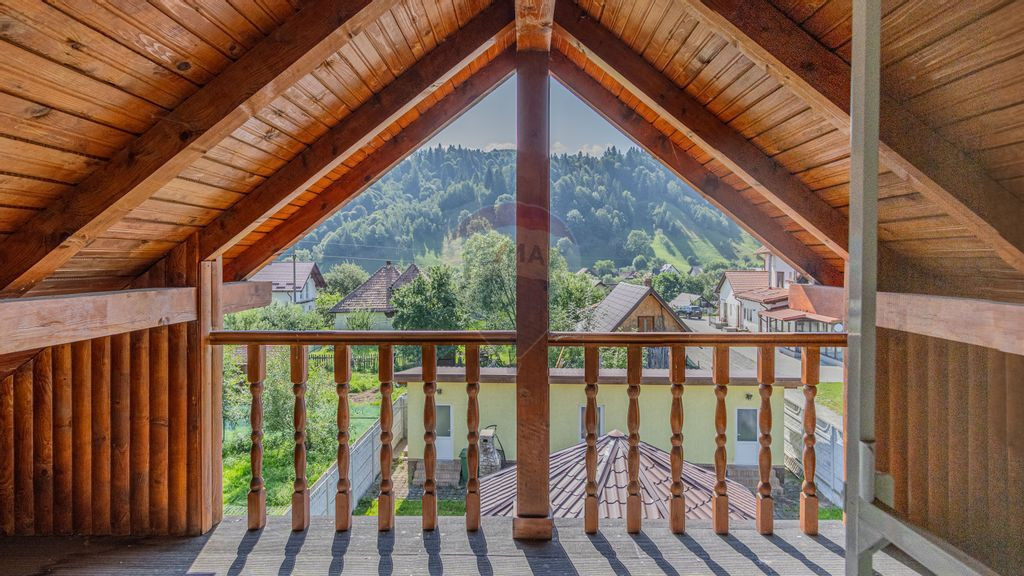 Vilă de vânzare | Reprezentare exclusivă | 0% comision cumpărător Vă prezentăm o proprietate cu adevărat specială, situată în Moieciu de Jos, județul Brașov, într-un cadru natural de excepție, la poalele Munților Bucegi. Amplasată pe un teren generos de 1.074 mp, această vilă impresionează prin funcționalitate, spațiu și versatilitate, fiind ideală atât pentru locuire, cât și pentru investiție. Cu o suprafață utilă de 208 mp, proprietatea dispune de 10 camere, dintre care 9 dormitoare, concepute pentru confort și intimitate. Șapte dormitoare beneficiază de baie proprie, iar două dormitoare sunt deservite de o baie comună. Compartimentare armonioasă: Parterul întâmpină printr-un living luminos și primitor, o bucătărie spațioasă cu zonă de dining, hol generos, două dormitoare cu baie proprie și o cameră tehnică dotată cu două centrale – pe gaz și pe lemne. Etajul oferă cinci dormitoare, fiecare cu baie proprie. Două dintre acestea sunt orientate spre fața casei și dispun de terasă, alte două spre partea din spate, de asemenea cu terasă, iar un dormitor lateral completează nivelul, păstrând aceeași notă de confort. Mansarda găzduiește două dormitoare luminoase, unul cu vedere spre față și unul spre spatele proprietății, deservite de o baie comună cu cadă. Exterior – un spațiu gândit pentru relaxare: Curtea este amplă și atent amenajată, oferind: -cinci locuri de parcare; -foișor generos, construit pe placă de beton, cu structură metalică și pereți, încălzit cu șase calorifere și deservit de centrală proprie, ideal pentru utilizare pe tot parcursul anului; -anexe multiple, ce includ bazin propriu de apă, spații de depozitare, mașină de spălat, frigider, baie suplimentară pentru oaspeți, precum și o centrală dedicată curții și foișorului. Potențial investițional: Prin compartimentare, dotări și poziționare, această proprietate este o oportunitate excelentă pentru dezvoltarea unei pensiuni sau a unui boutique hotel, dar și o alegere ideală pentru o familie numeroasă care își dorește spațiu, liniște și natură. Moieciu de Jos este recunoscută pentru farmecul său autentic, peisajele spectaculoase și aerul curat, fiind o destinație apreciată de turiști și iubitorii de munte. Pentru detalii suplimentare sau pentru a programa o vizionare, vă invit să mă contactați.
