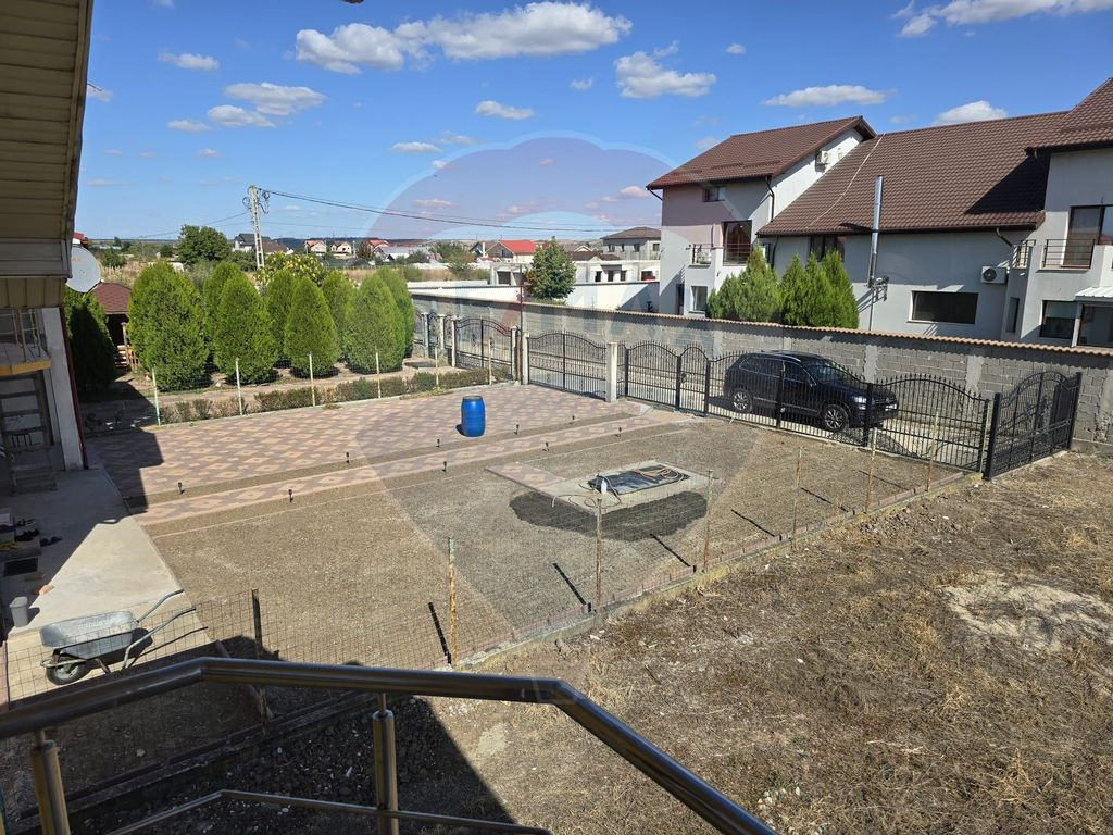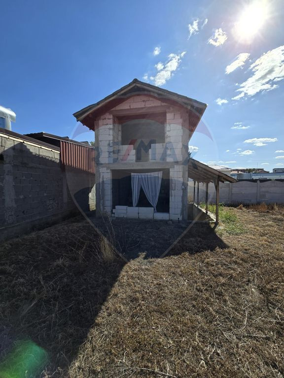 Terenul in suprafata de 1000 mp , este imprejmuit si are o deschidere la strada asfaltata, iar pe proprietate mai este o constructie la rosu S+P+M ce are la subsol beciul, iar la parter poate fi garaj sau terasa.