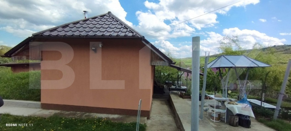 Catalin Manolache, Specialist Broker Blitz, va propune spre vanzare o constructie noua, la aproximativ jumatate de ora de oras, intabulata in 2022, pe un teren de 2200 mp. 1. Casa 1-constructie recenta- aprox 60 mp utili Compartimentare: -camera mare+bucatarie spatioasa, 2 bai- una de serviciu si o baie mare-cada, masina spalat, chiuveta cu oglinda, hol; - 2 terase acoperite - una de 23 mp si una de 12 mp; -dublu acces si prin fata si prin spatele casei; -usa intrare si geamuri termopan; -tabla Lindup; -termosemineu care incalzeste toata casa+calorifere; -pod inalt, luminos cu acces scara plianta metalica+ geam + lumina trasa in pod; -izolatie exteriora cu termosistem de 10, eps 80. -fundatii foarte bine facute; - magazie spatioasa de 16mp, inchisa, in cadrul aceleiasi constructii, pentru depozitare)' - beci de 12 mp; -fantana cu hidrofor; - o gradina superba, amenajata, peste 100 pomi fructiferi tineri, pe rod- visini,ciresi, caisi, pruni, meri, peri, smochin, nuci; - vie; -straturi de legume. Utilitati: - apa-fantana, hidrofor, curent electric, fosa, cablu tv si internet+ apa Apavital si canalizare( proiect spre finalizare in toata comuna), incalzire prin termosemineu cu calorifere; 2. Casa 2- constructie recenta- stadiu nefinisata Suprafata: de 40m Compartimentare: -o camera bucatarie, baie, veranda si magazie pentru lemne. Proprietatea are deschidere la 2 drumuri- sosea asfaltata. Exista multiple imbunatatiri (trotuare, beci, gradina amenajata, tanara si excelent intretinuta). Gardul este nou facut, fundatie de beton si sipca metalica(peste 12.000 euro)-finalul anului 2024. Proprietatea beneficiaza de o priveliste minunata si aer curat, avand ca vedere in fata padurea, o oaza de liniste si frumusete. Hai sa te muti intr-un loc in care te vei simti acasa! Cod ofertă / ID BLITZ: P10355 Id intern: P10355