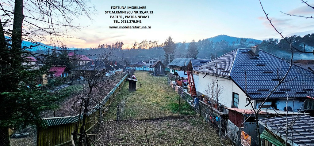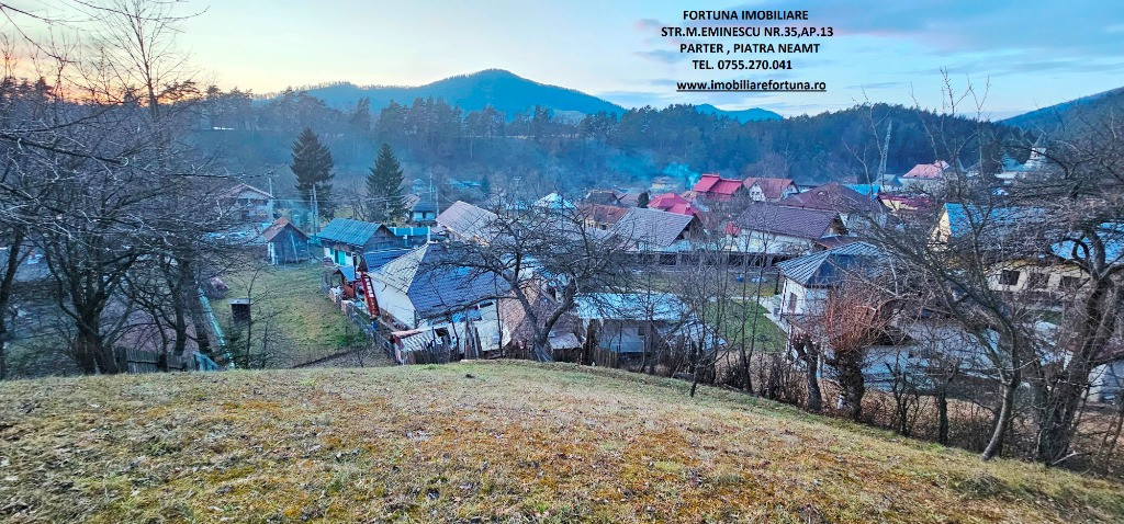 CASĂ + ANEXA + TEREN 1.785 MP, LA 5 MINUTE DE ORAS, ÎN CADRU NATURAL DE VIS, 75.000 EURO Dacă îți dorești să scapi de stresul și stilul de viață agitat din mediul urban, sa simți freamătul pădurii,să fii înconjurat de natură și să dai o șansă traiului liniștit, lipsit de grijile cotidiene,FORTUNA IMOBILIARE propune spre achiziție această proprietate, compusă din suprafața de 1.785 mp teren intravilan,casă bătrânească și anexă, situată în intravilanul comunei Alexandru cel Bun, într-o zonă cu rezonanță spirituală din jud. Neamț. Imobilul este situat la drum asfaltat, între case, iar partea din spate a terenului fuzionează cu pădurea. Proprietatea beneficiază de apă și curent de la rețeaua publica, iar gazul este in fata porții. Preț 75.000 euro . Pentru o prezentare detaliată a acestei oferte, furnizarea unor informații suplimentare referitoare la situația juridică / identificarea imobilului și programarea unei vizionări, vă invităm la sediul nostru, Fortuna Imobiliare, situat pe str. M. Eminescu, nr. 35, ap. 13, parter, lângă fostul Tribunal, tel. contact 0755.270.041. Your comfort is our priority ! Oferta noastră completă o găsiți aici: https://imobiliarefortuna.ro/