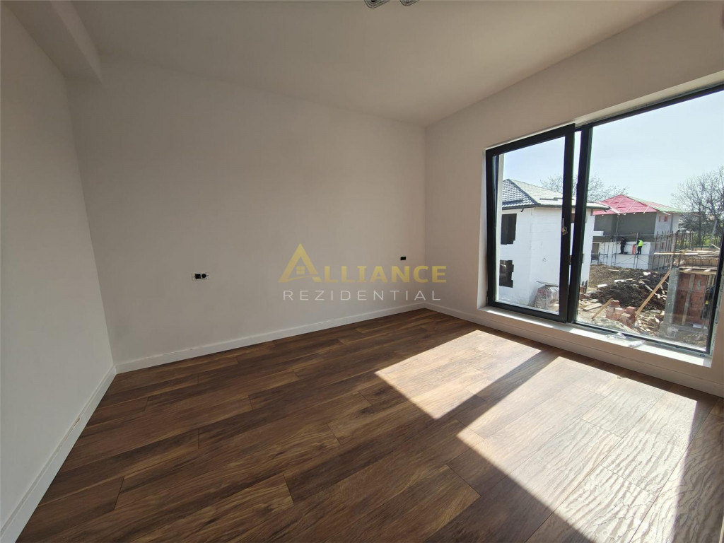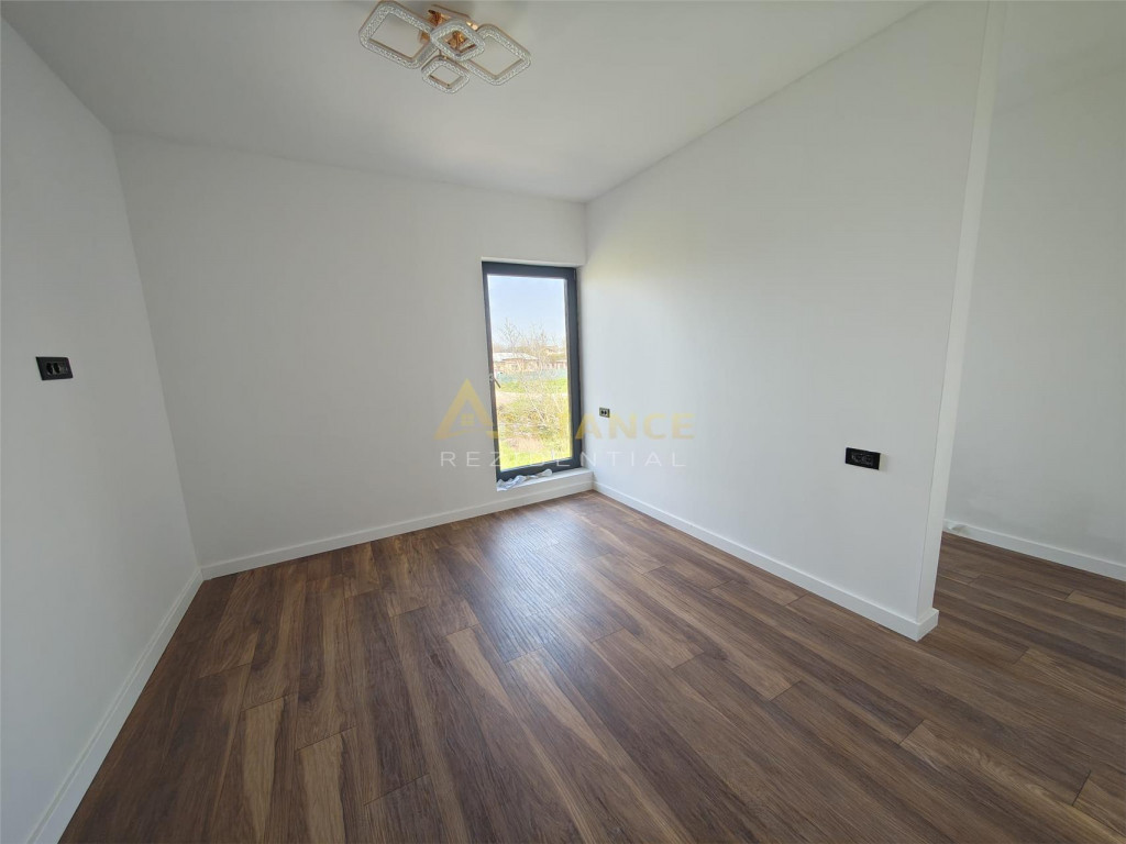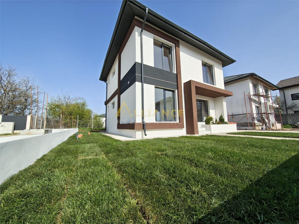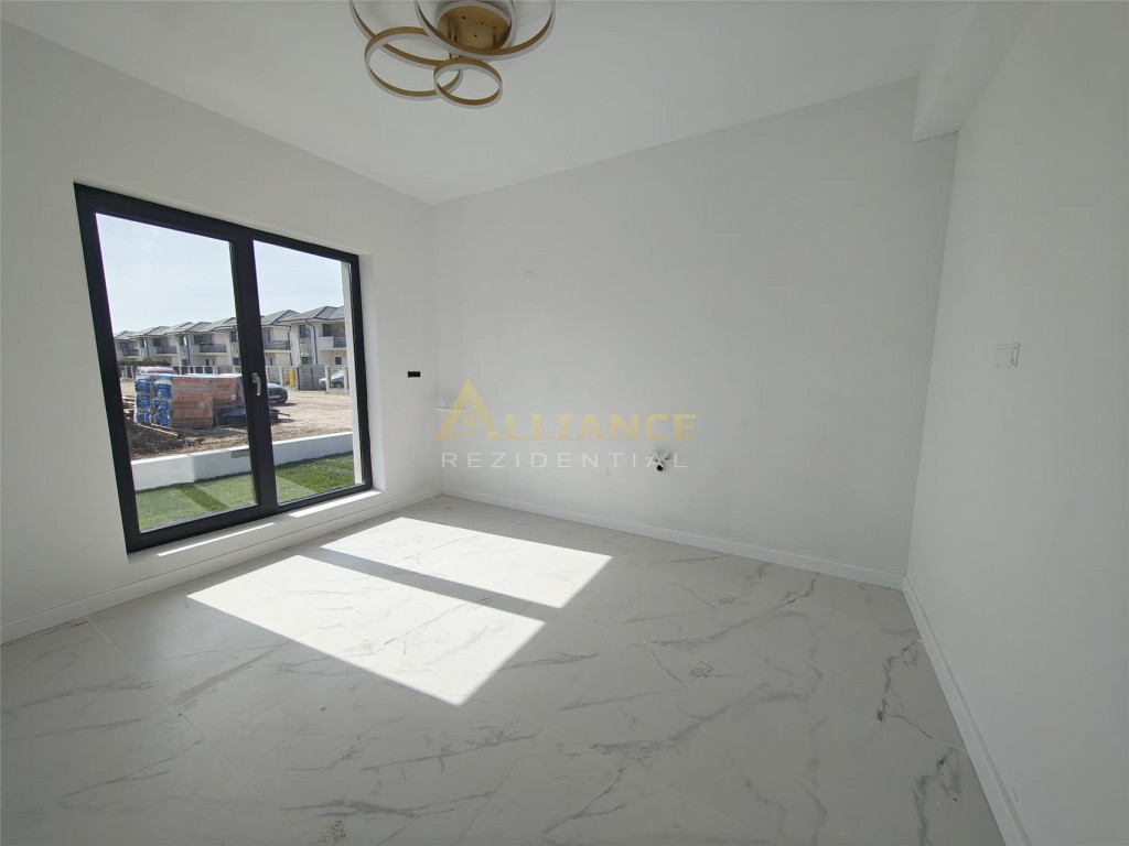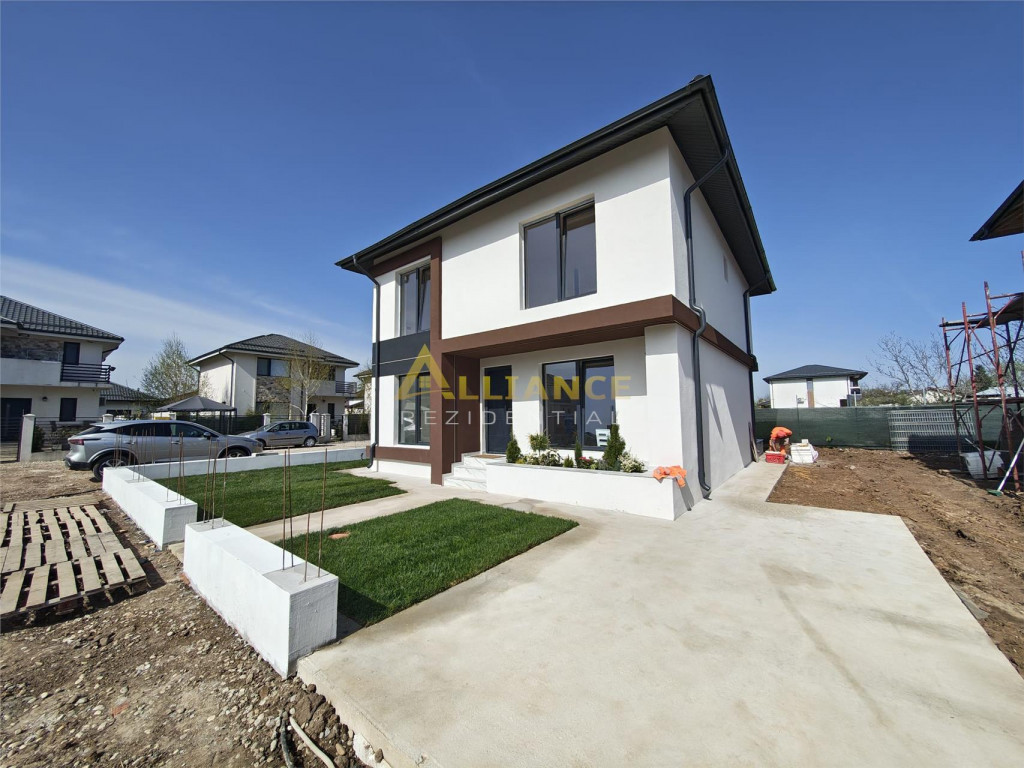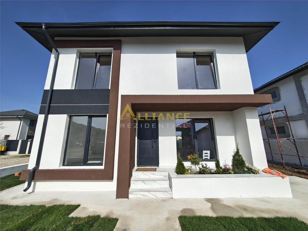 Iti prezentam o casa moderna, situata intr-un complex rezidential format din 6 unitati, ideala pentru o familie care isi doreste confort, functionalitate si liniste, intr-o zona bine conectata. Compartimentare: Parter: Living open-space cu bucatarie ndash; spatiu generos pentru familie si prieteni Grup sanitar de serviciu Etaj: 2 dormitoare spatioase, fiecare cu dressing Dormitor matrimonial cu baie proprie Baie cu acces din hol Birou ndash; ideal pentru work from home sau camera hobby Detalii tehnice si dotari: Suprafata utila: 90 mp Teren: 340 mp Ferestre tripan, pentru izolare fonica si termica Incalzire in pardoseala, confort termic ridicat Utilitati: gaz, curent electric, apa din put forat, fosa ecologica Posibilitate piscina proprie (cost suplimentar: 20.000 euro;) Alte avantaje: Pretul nu include TVA Comision 0% Broker bancar gratuit ndash; suport complet pentru cea mai buna solutie de finantare Pret casa (achizitie prin credit): 135.000 euro; TVA Contact pentru vizionare (inclusiv weekend): Gabi ndash; 0739 922 930