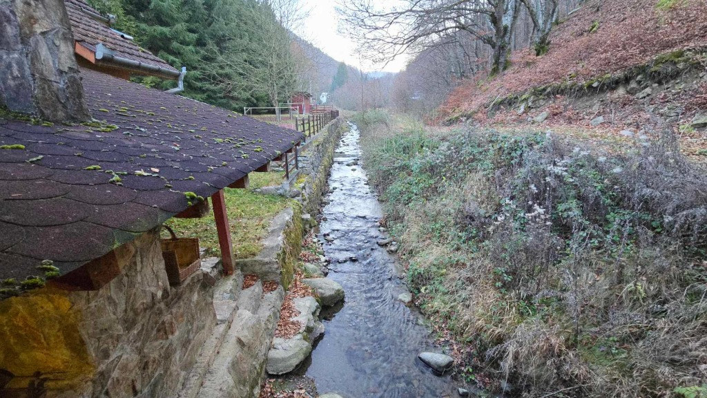 Corpul 1 al primei cladiri dispune de terasa de intrare cu acces la terasa suplimentara care este comuna cu corpul 2, amplasata in imbinarea celor doua corpurii, peste paraul care traverseaza proprietatea, aici regasim zona de relaxare, zona de mese, cuptor/semineu exterior, camera tehnica cu sala centralei cu centrala pe lemne si a boilerului pentru apa calda. Living foarte spatios cu bucatarie si loc de luat masa in open-space, spatiu de relaxare si semineu pe lemne, baie la parter, 3 camere la etaj+ baie, fiecare camera dispune de balcon propriu, mansarda cu o camera foarte mare si multiple paturi de dormit, ciubar pentru 12 persoane, cu LED, functie jacuzzi si sistem de filtrare.