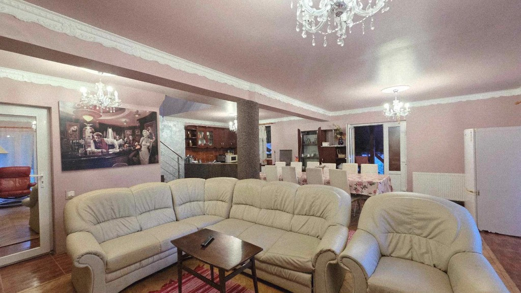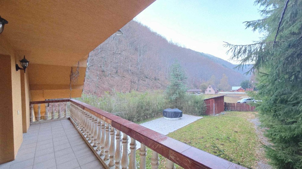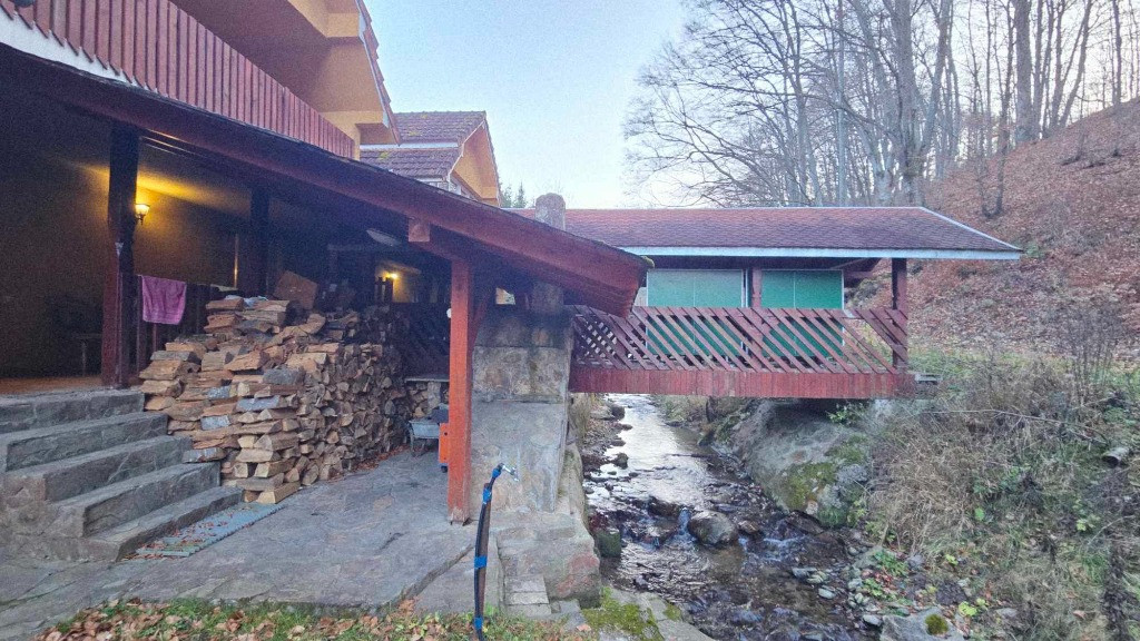 Proprietatea este compusa din doua cladiri identice ca compartimentare, cu suprafete si dotari generoase, teren 600+600,defalcate cadastral suprafata totala 1200 mp, doua corpuri de proprietate unite intre ele pe care in descrierea urmatoare le vom denumi corpul 1 si corpul 2 cu suprafete de 170 mp respectiv 200 mp, suprafata totala 370 mp, constructie relativ noua construita cu simt de raspundere, caramida, izolatie exterioara si multe altele. Filigorie din lemn masiv care uneste cele doua intrari ale corpurilor 1 si 2 in spatiu comun si care se extinde de la nivelul cladirilor pana peste paraul care traverseaza proprietatea, completand momentele de relaxare si intarind cadrul mirific pe care se afla proprietatea si panorama acestei proprietati.