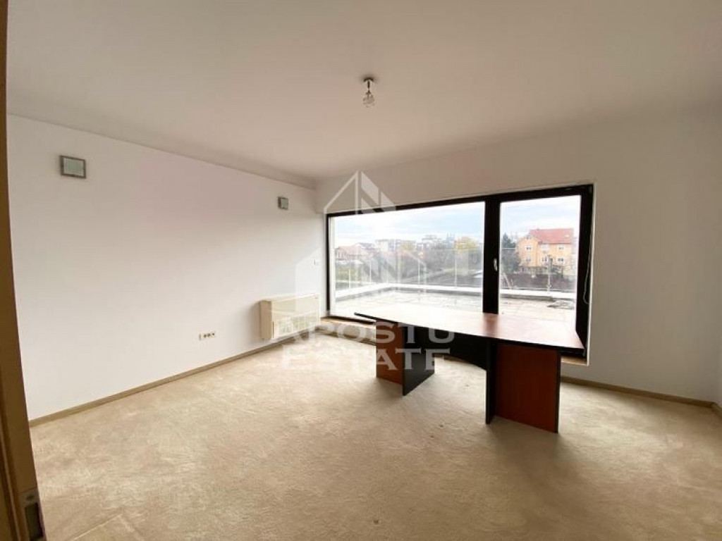 ApostuEstate va propune spre inchiriere Casa/Vila/Spatiu comercial – 650 mp utili, teren 3000 mp, finisaje premium. Proprietate unica, inspirata de celebra casa Fallingwater, cu arhitectura moderna, linii curate si ferestre ample. Ideala atat ca locuinta, cat si pentru clinici, birouri sau sediu reprezentativ (ziduri interioare neportante, usor de recompartimentat). Casa beneficiaza de 10 locuri de parcare in fata imobilului. Caracteristici principale: • Suprafata utila: 650 mp • Teren: 3000 mp, front stradal 40 m • Constructie finalizata in 2008, structura pe cadre, pereti Porotherm 38 cm, termoizolatie 10 cm • Curte amenajata cu irigatii automate, foraj, gazon, zona de relaxare • Gard premium (3,5 m inaltime), poarta pietonala automata, porti auto Hormann, cabina pentru portar si toaleta exterioara • Sistem de alarma, ferestre din lemn triplustratificat, geamuri antiefractie • Incalzire/racire prin ventiloconvectoare si chiller York, sistem de filtrare si dedurizare apa Compartimentare: • Parter: living cu semineu, terasa acoperita, bucatarie + dining cu inaltime pe doua niveluri, birou, camera tehnica, garsoniera cu intrare separata, baie, 2 camere, 2 garaje generoase, incalzite si cu usi automate marca Hormann • Etaj: 4 camere, master cu dressing, baie cu Jacuzzi si terasa, biblioteca Finisaje de lux: Tamplarie Unilux cu inchidere in 8 puncte si sticla securizata, parchet de nuc Kahrs, usi Ringo, obiecte sanitare Jacuzzi, vana Jacuzzi cu hidromasaj, baterii Newform, semineu Palazzetti, balustrade inox + sticla securizata. Localizare excelenta: Aproape de Piata Miorita, Lidl, Selgros, Dedeman, Gemi Center, Clinica Medlife Genesys, scoli si gradinite. Zona linistita si sigura, cu vecini onorabili si vile nou construite. Pretul este negociabil si exista mai multe posibilitati de plata. Oferta ID CP2828071