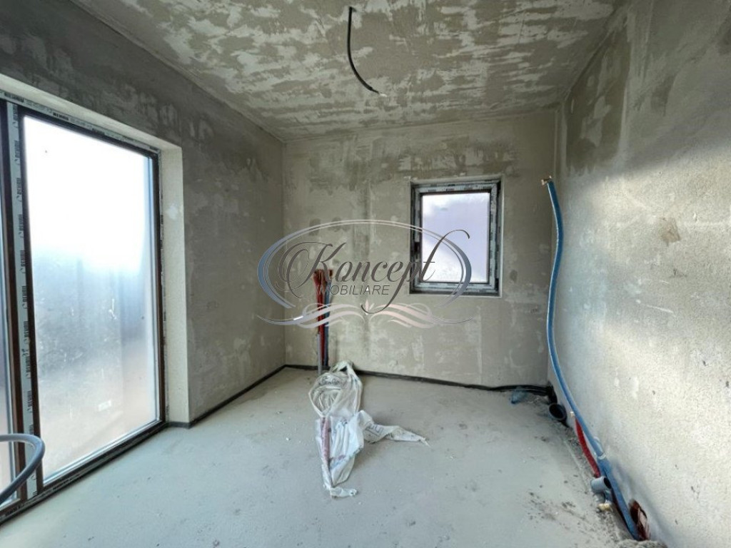 Koncept Imobiliare va ofera spre vanzare o casa de tip duplex intr-un ansamblu nou construit in Luna de Sus. Unitatea are o suprafata utila de 161 mp, plus un teren aferent de 350 mp si este compartimentata astfel: demisol open-space; la parter se afla un hol la intrare, o camera care se poate folosi ca birou sau dormitor, baie, casa scarii, living+bucatarie, camara si terasa cu iesire in gradina; la etaj un dormitor matrimonial cu baie si dressing propriu, 2 dormitoare, baie si 2 balcoane. Casele se predau la stadiul de semifinisat cu centrala termica Bosch, incalzire in pardoseala, fatada si curtile amenajate, ferestre tripan, usa la intrare, peretii gletuiti si toate instalatiile trase pe pozitie. La pret se adauga TVA. Pentru informatii suplimentare, programarea unei vizionari sau pentru a afla oferta noastra completa, nu ezitati sa ne contactati telefonic, prin e-mail sau la sediul agentiei noastre de pe str. Aviator Badescu nr. 19, Cluj-Napoca. Id intern: P16594