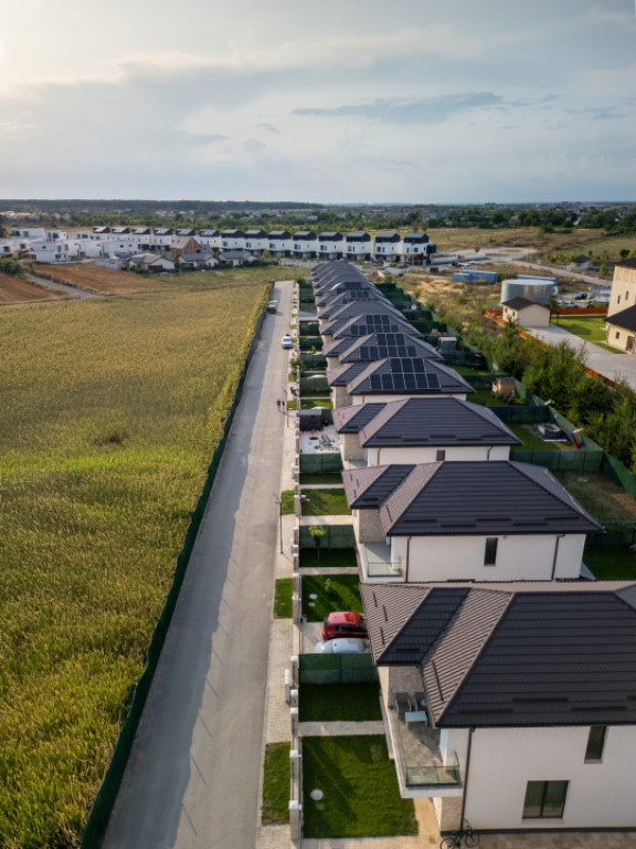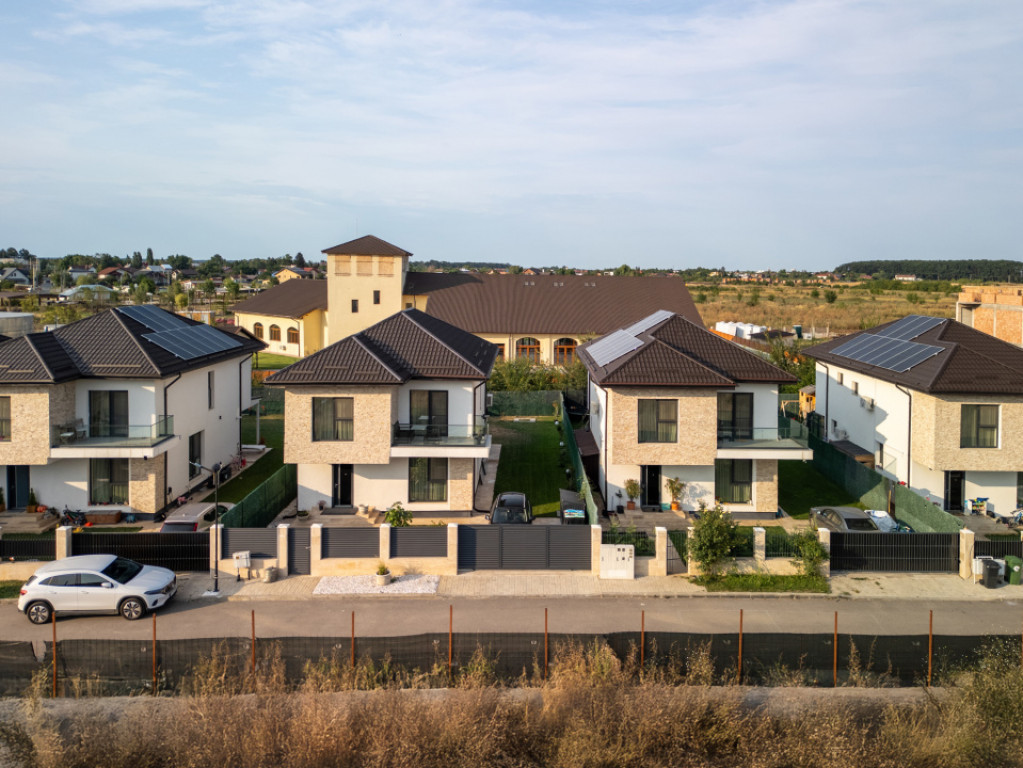Aceasta proprietate nu are comision la cumparare ! Complex Cherry 2 Park Corbeanca: Locuințe Moderne și Eficiente, în Inima Naturii și Aproape de Facilitățile Urbane Oamenii au fost întotdeauna atrași de liniștea și frumusețea pădurii. Complexul Cherry 2 Park Corbeanca este situat chiar lângă 16 hectare de pădure, oferindu-ți șansa de a te bucura zilnic de natură. Cherry 2 Park Corbeanca aduce un nou nivel de confort și funcționalitate, conceput pentru a răspunde celor mai exigente nevoi. În dormitorul matrimonial de la etaj, spațiul pentru dressing este acum optimizat pentru o organizare eficientă și elegantă, iar bucătăria de la parter poate fi adaptată fie în stil open space, fie închisă, în funcție de preferințele tale. Spațiul de depozitare sub scară a fost mărit, oferindu-ți mai mult loc pentru organizarea lucrurilor. De asemenea, casele impresionează prin detaliile de design exterior, unde plăcile de piatră adaugă un plus de stil și asigură o izolare termică superioară. Întreaga locuință este echipată cu încălzire prin pardoseală, pentru un confort termic optim în orice sezon. În plus, acest model de casă include acum o cameră suplimentară la parter, care poate fi utilizată ca dormitor, birou sau orice altă destinație necesară, aducând numărul total de camere la 5. Astfel, casa oferă și mai mult spațiu și flexibilitate pentru familia ta. Pe lângă toate aceste îmbunătățiri, locuințele din Complex Cherry 2 Park Corbeanca sunt echipate cu panouri fotovoltaice și pompe de căldură, oferindu-ți o eficiență energetică ridicată. Aceste sisteme avansate nu doar că reduc costurile de întreținere, dar contribuie și la protejarea mediului, transformând casa într-un model de sustenabilitate. Cu aceste dotări, vei beneficia de un confort sporit, cu un impact redus asupra mediului. Detalii despre casă și vecinătate: Locuințele sunt construite pe o structură solidă, cu stâlpi și grinzi, planșeu de beton peste nivelul 1 și mansardă. Compartimentarea este bine gândită pentru a oferi un confort optim: Parter: hol de intrare, sufragerie, bucătărie (open space sau închisă, în funcție de preferințe), un grup sanitar, spațiu de depozitare și o cameră suplimentară (birou/dormitor). Etaj: 3 camere, inclusiv o cameră matrimonială cu dressing bine organizat și baie proprie, plus un balcon. Mansardă cu pod de depozitare accesibil printr-o scară retractabilă, cu planșeu de beton. Materiale de calitate și finisaje superioare: Ferestre Veka Tripan, feronerie Rotto Parchet laminat Krono Original, compatibil cu sistemul de încălzire prin pardoseală Plăci ceramice KAI în băi, bucătărie și holuri Obiecte sanitare Ideal Standard Izolație termică cu polistiren pentru pod Travertin pe alei, glafuri din marmură Acoperiș din tablă Bilka Gard cu fundație de beton, trotuare și drum de acces pavate sau asfaltate Iluminat stradal Vecinătăți și facilități: Complexul se află în Corbeanca, lângă Parcul Corbeanca, într-o zonă care îți oferă atât liniștea naturii, cât și accesul rapid la facilități urbane. În apropiere găsești centre comerciale importante, cum ar fi Mall Băneasa, școli, grădinițe, restaurante și centre de agrement, toate la doar câteva minute distanță. Accesul în complex este controlat printr-o poartă principală cu cod de acces, iar utilitățile sunt complet disponibile: gaze, curent, apă și canalizare din rețea. Eficiență energetică și confort: Datorită pompelor de căldură și panourilor fotovoltaice, casele din Cherry 2 Park Corbeanca oferă un nivel ridicat de eficiență energetică. Aceste dotări asigură un confort termic deosebit, contribuind în același timp la reducerea facturilor de energie și la protejarea mediului înconjurător. Este o locuință care îmbină perfect confortul modern cu responsabilitatea ecologică. Id intern: ZONE0259