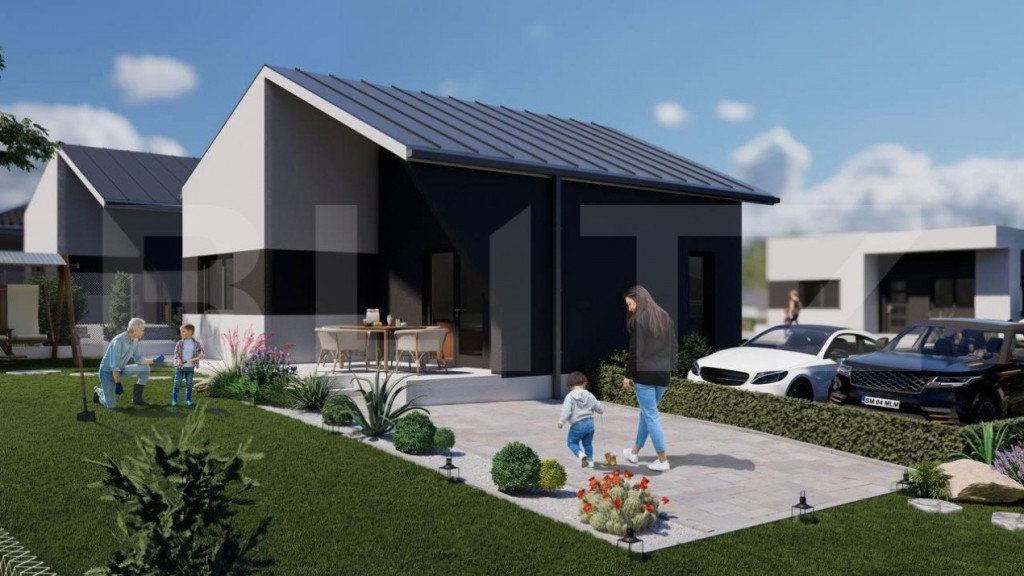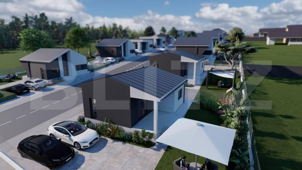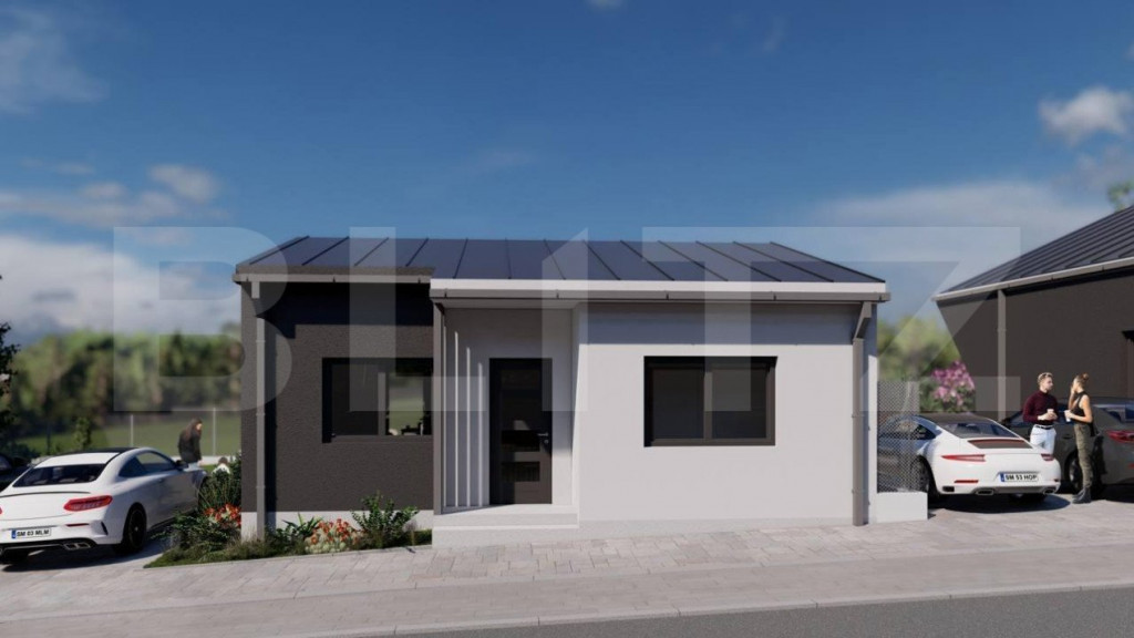 Ansamblu de Case cu Structura Metalica in Viile Satu Mare Descopera o oportunitate unica de a trai intr-un ansamblu de case moderne, amplasate pitoresc langa padurea din Viile Satu Mare! Va prezentam cu mandrie aceste locuinte cu structura metalica, concepute pentru a oferi confort, siguranta si stil deosebit. Localizare ideala: Ansamblul rezidential este inconjurat de natura, fiind amplasat in apropierea frumoasei paduri din Viile Satu Mare. Acest cadru natural va va oferi o atmosfera linistita si o conexiune unica cu natura. Caracteristici ale caselor: Suprafata utila de 75mp, ideala pentru un stil de viata modern si functional Spatiosul living, locul perfect pentru relaxare si petrecerea timpului cu familia si prietenii Doua dormitoare primitor, asigurand un somn linistit si odihnitor Dressing pentru organizarea eficienta a garderobei Bucatarie bine echipata, inspirata sa-ti satisfaca toate nevoile culinare Debara pentru depozitarea articolelor si lucrurilor personale Baie moderna si eleganta Hol pentru a asigura un flux armonios in interiorul casei Terasa, unde vei putea savura momente de relaxare si privelisti minunate Finisaje superioare: Exteriorul este finisat cu grija, inclusiv tencuiala decorativa siliconata aplicata peste termoizolatie exterioara cu polistiren de 15cm, asigurand o izolatie termica eficienta si un aspect atragator. Interiorul este predat semifinisat, gletuit si cu sapa mecanizata elicopterizata, oferindu-ti posibilitatea de a-ti personaliza locuinta dupa preferinte. Termoizolatia cu spuma poliuretanica asigura un climat interior confortabil pe tot parcursul anului. Tamplaria din PVC, cu proprietati izolante si rezistenta in timp, contribuie la eficienta energetica a locuintei. Suplimentar, puteti alege finisaje complete: Daca doriti un pachet complet de finisaje interioare, avem optiuni disponibile la cerere, pentru a transforma casa in caminul perfect, adaptat stilului si preferintelor dumneavoastra. Preturi competitive: Preturile locuintelor variaza intre 69.000 euro si 89.000 euro, in functie de suprafata terenului si de finisajele dorite. Suntem flexibili si deschisi sa discutam posibilitatea de negociere, in functie de modalitatea de plata, termenul si conditiile de predare. Garantie pe viata pentru structura de rezistenta: Ne dorim sa va oferim cea mai inalta calitate si sa va asiguram de durabilitatea casei dumneavoastra. De aceea, va oferim garantie pe viata pentru structura de rezistenta a casei. Suprafete generoase de teren: Alegeti terenul care vi se potriveste cel mai bine, avem disponibile parcele de 500mp, 375mp si 250mp, pentru a va oferi libertatea de a alege spatiul ideal pentru caminul dumneavoastra. Realizati visul de a locui intr-un camin modern si bine pus la punct in inima naturii! Pentru detalii suplimentare si pentru a programa o vizionare, nu ezitati sa ne contactati! Cod ofertă / ID BLITZ: P11658 Id intern: P11658