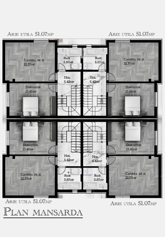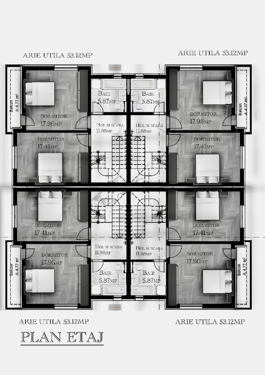 Vânzare direct de la dezvoltator. Case tip Duplex P+1E+M-144 mp utili/locuință-Dobroești,str.Doinei si str.Părului. Vă propunem un proiect nou,modern, situat in Dobroești, Ilfov format din două case cuplate la calcan de tip duplex cu o suprafață totală de 707 mp construiți.Dezvoltat pe un teren de 541 mp cu ieșire la două străzi principale (Doinei si Părului), proiectul se împarte in 4 unitați locative P+1E+M, fiecare avand 144 mp utili. ✨ Locuințe moderne, spațioase și complet finisate. Acces rapid către zona de nord :Pipera/Băneasa, Calea Moșilor, Fundeni, Pantelimon, autostrada A2 si A1. 144 mp utili / unitate • 4 unități • P+1E+M Încălzire în pardoseală • Băi utilate • Finisaje la cheie Gaze, curent și canalizare – contorizare individuală ✅ Vânzare directă de la dezvoltator • Fără comision • Curte privată pentru fiecare casă și două locuri de parcare/unitate. Contactează-ne acum pentru mai multe detalii. Compartimentare pentru fiecare locuință: • Parter: living + bucătărie open space, baie, spațiu depozitare. • Etaj 1: 2 dormitoare generoase și baie. • Mansardă: cameră de zi / dormitor, al doilea dormitor și baie. Preț : 169.000 E + TVA