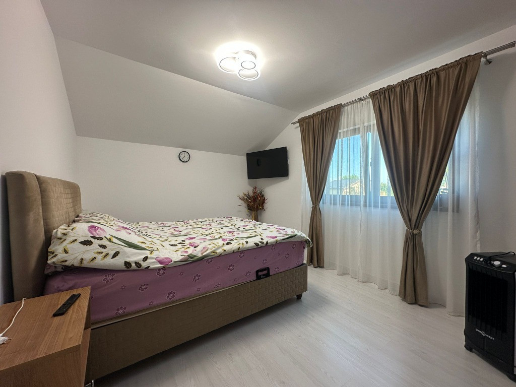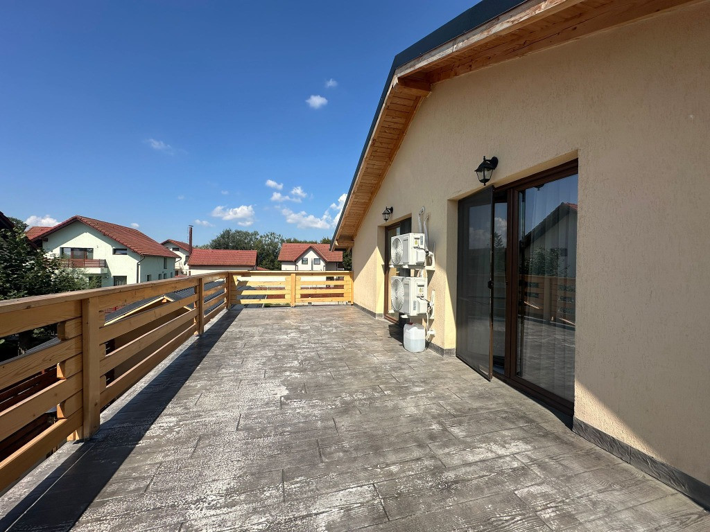 Case noi de vânzare în Hălchiu – la cheie, într-o zonă liniștită și apropiata de Brașov Colosseum Imob Invest vă propune spre vânzare doua case moderne, construite pe un teren de aproximativ 550 mp, racordate la gaz, curent electric, apă curentă și fosă septică. Locuințele se predau la cheie, nemobilate, oferindu-vă libertatea de a le amenaja după propriul gust. Suprafață utilă: 120 mp Localizare: zonă retrasă și liniștită din Hălchiu, aproape de centru și la doar câteva minute de Brașov. Compartimentare: • Parter: living spațios și luminos, bucătărie generoasă, baie modernă și o terasă perfectă pentru relaxare; • Etaj: 3 dormitoare confortabile (două cu ieșire pe o terasă spațioasă), plus o baie. Avantaje: Cartier rezidențial în plină dezvoltare; Liniște, intimitate și aer curat, departe de aglomerația urbană; Acces rapid către Brașov și puncte de interes din zonă; Curte proprie de 550 mp – suficient spațiu pentru grădină, loc de joacă sau zonă de relaxare; Finisaje moderne, incalzire in pardoseala, predate la cheie. Prețuri începând de la 158.800 € + TVA Pozele sunt cu caracter informativ! Pentru mai multe detalii, nu ezitati sa ne contactati!