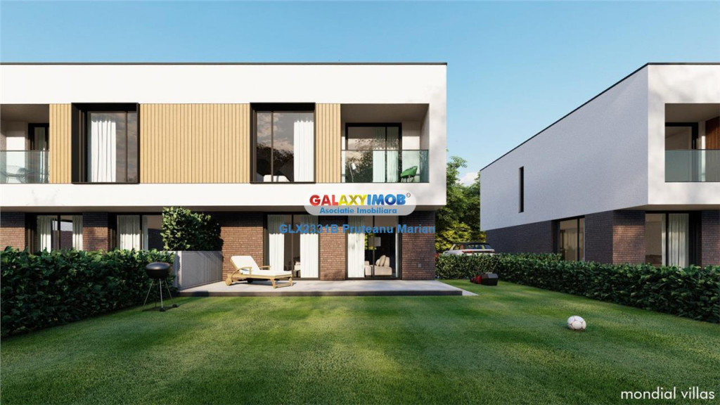 ,la parte de sus este iesita in consola si se poate inchide foarte usor in geam pe sitem de culisare.Terasa este finisata cu gresie portelanata ce se poate inchide foarte usor cu gheam de sticla culisant, iar curte dispune de zona de barbeque ce se poate amenaja de catre client!