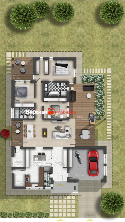 Va prezentam doua proiecte similare de case exclusiviste, realizate conform celor mai inalte standarde de calitate, situate in Sanmartin, la doar cativa pasi de Oradea. Aceste locuinte sunt proiectate pe un singur nivel, oferind un spatiu generos si bine compartimentat, perfect pentru cei care apreciaza luxul si calitatea. Caracteristici principale: middot; Suprafata: fiecare casa dispune de o suprafata utila generoasa de 210 mp, incluzand 3 terase pentru relaxare si socializare in aer liber, 3 dormitoare spatioase, 3 bai moderne, un living generos cu dining integrat si o bucatarie separata, completata de o camara practica. Pentru eficienta si confort suplimentar, casele sunt echipate cu o camera tehnica si un garaj dublu. middot; Sistem de incalzire si racire: casele sunt prevazute a fi dotate cu incalzire in pardoseala prin pompa de caldura Samsung, completata de ventilatie de la aceeasi marca. Fiecare camera vine echipata cu termostate individuale pentru controlul optim al temperaturii. middot; Detalii tehnice: casele sunt echipate cu acoperis de tabla Lindab, iar inaltimea camerelor este de 3.20 m, conferind o senzatie de spatiu si lumina. middot; Calitate premium: toate materialele folosite sunt de cea mai inalta calitate. Fundatia este sapata la 1.6 m adancime, iar structura este realizata din caramida. Sub placa de beton, exista o izolatie cu polistiren, iar planseul este izolat suplimentar cu fibra de lemn. Izolatia exterioara este realizata cu vata bazaltica de 15 cm, asigurand eficienta termica. Amenajari interioare de calitate premium: middot; Pardoseala: parchet triplu stratificat