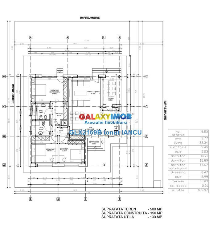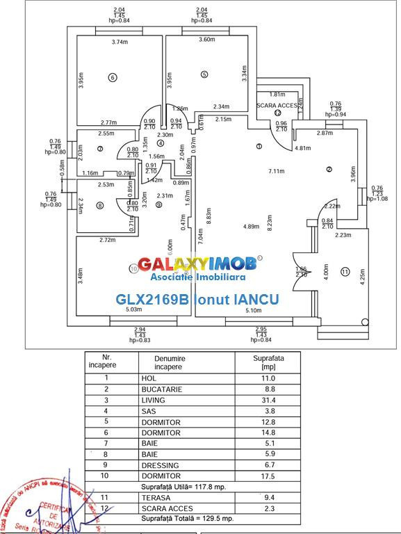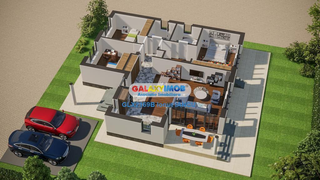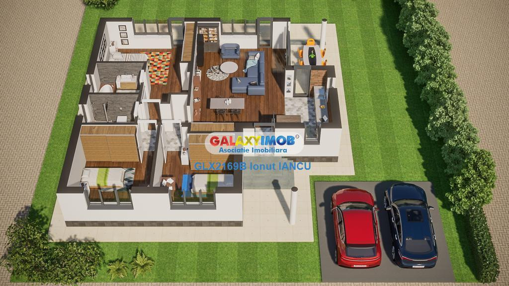 Galaxy Residence Layout va propune case singulare PREMIUM cu 4 camere, pe un singur nivel, cu arhitectura moderna si elemente traditionale, construite din materiale de cea mai buna calitate, selectate cu grija pe baza unei experiente de peste 20 de ani in constructii. Detalii proprietate Suprafata utila: 109 m.p. Amprenta la sol: 135 m.p. Structura: Cadre de beton armat (8 fire de fier beton pe fiecare stalp si etrieri dubli), pereti din caramida porotherm. Avem poze concludente din toate etapele constructiei si acceptam orice expertiza tehnica de specialitate. Compartimentare: Living spatios: 32 m.p. Bucatarie: 9 m.p. Dormitor matrimonial: 17,5 m.p (cu baie proprie de 5 m.p si dressing de 6 m.p.) 2 dormitoare: 13 m.p. (deservite de o baie de 4 m.p.) Terasa: 15 m.p. compelt acoperita, cu stalpi si grinzi de beton ceea ce va da posibilitatea de a mari livingul pana la aproximativ 50 m.p. sau amenaja separat o zona de dining. Teren Suprafata: 422 m.p. Deschidere: 19 m Caracteristici premium Finisaje alese de viitorul proprietar Inaltime camere: 2,8 m Pod generos: 2 m la coama (ideal pentru depozitare) Izolatie cu celuloza injectata pentru eficienta termica ridicata si polistiren de 16 cm la exterior, Dotari Incalzire in pardoseala Centrala proprie Obiecte sanitare Roca si baterii Grohe Compartimentare din caramida Porotherm Instalatie electrica din cupru Utilitati Curent trifazic, apa, canalizare, gaze Internet de mare viteza si cablu TV Locatie excelenta Situate intr-o zona linistita, inconjurata de padure, casele ofera aer curat si un ambient perfect pentru un camin armonios. Acces facil catre DN1, A2, Pipera, Bucuresti si Otopeni. Facilitati din apropiere Gradinita de stat: 500 m Scoala de stat: 2 km Padurea Codrii Vlasiei: 200 m DN1 Value Center, Edenland, Laguna Verde, lacul Balotesti, centre de echitatie, pescuit si alte activitati recreative. Vizionare Descoperiti toate detaliile si farmecul acestui camin la o vizionare! Informatii eficienta energetica: Clasa energetica: A Consumul de energie primara: 102 Indicele de emisii echivalent CO2: 47 Consum de energie din surse regenerabile: 0