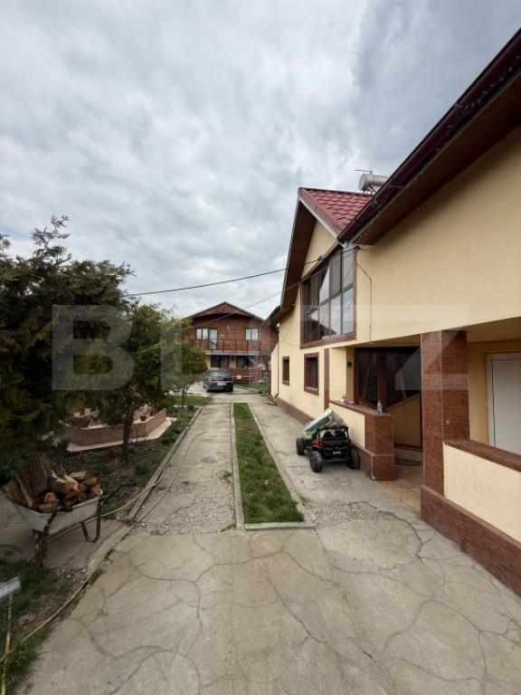 Blitz vă propune spre vânzare o proprietate deosebită, situată în zona Cărbesti, la doar 11 km de municipiul Târgu Jiu, ideală pentru locuință multifamilială, două familii sau investiție. Proprietatea este amplasată pe un teren generos de 2.800 mp și este compusă din două case individuale, edificate în aceeași curte: ???? Casa principală – 180 mp, compartimentată astfel: • 6 camere: • 4 dormitoare • living • bucătărie • birou • 1 baie • mansardă cu posibilitatea amenajării a încă 2 camere, accesul fiind realizat prin scară glisantă ???? Casa secundară – 120 mp, compusă din: • 5 camere, dintre care: • 2 camere de depozitare • din una dintre ele se poate amenaja o a doua bucătărie, fiind ideală pentru locuință separată sau spațiu auxiliar Curtea este atent amenajată și oferă un cadru natural deosebit, fiind dotată cu: • două foișoare • lac cu pești și cascadă • cuptor rustic • anexe gospodărești • cameră tehnică / cameră centrală Proprietatea beneficiază de multiple dotări moderne: • sistem de supraveghere video (CCTV) • porți de acces și poartă de garaj automate, cu telecomandă • panouri solare • aer condiționat Zona este liniștită, cu acces facil către oraș, proprietatea oferind intimitate, spațiu și multiple posibilități de utilizare. ???? Pentru mai multe detalii sau pentru programarea unei vizionări, vă invităm să ne contactați! Cod ofertă / ID BLITZ: P160441 Id intern: P160441
