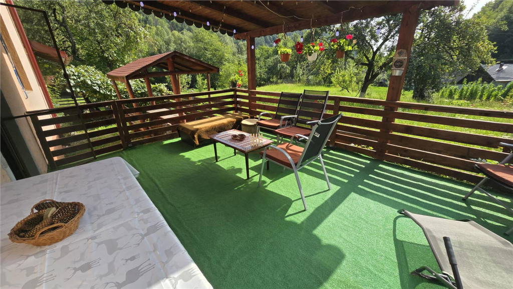 Casuta de Sub Padure! In Bucovina! Zona Solonet ndash; Cacica! Locuri cu o frumusete de poveste! Terasa ndash; sa te bucuri de munte si flori! Padure, cer senin sihellip;bucurie! Bucovina cea minunata! Mobilata si utilata complet! Living spatios cu Vedere si iesire pe terasa! Doua bai moderne! Scari interioare frumoase si balcon! Bucatarie si soba traditionala cu plita! 3 dormitoare! Centrala termica pe lemn si calorifere! Fantana proprie si hidrofor! Fosa. Teren 1768 mp! Pret: 106800 euro; Comision quot;0quot; pentru cumparator. Detalii: 0727817187 www.imobiliaresuceavapremium.ro