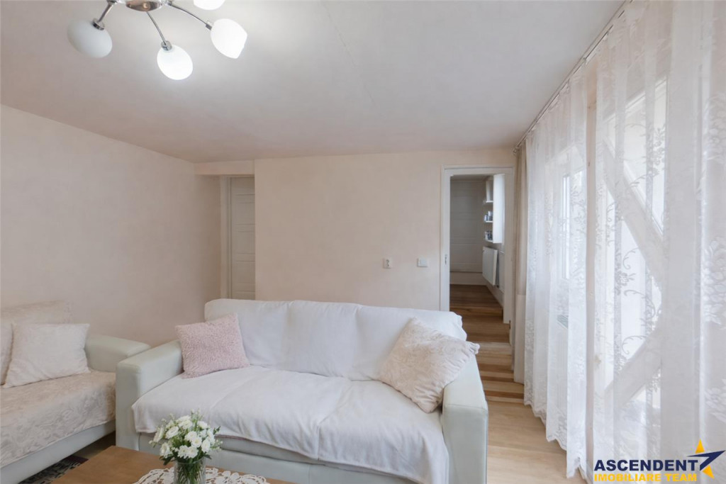 Comision cumparator 2% TVA din valoarea de tranzactie ASCENDENT IMOBILIARE Un refugiu intim la poalele Tampei ndash; liniste, verde si suflet de bdquo;acasa Exista case care se vad. Si exista case care se simt! Este onorata sa va prezinte in EXCLUSIVITATE o proprietate pozitionata excelent in cartierul cel mai vechi al orasului Brasov - Schei, cu arhitectura pitoreasca si cu specific rural, cu strazi inguste emblematice si incarcate cu istorie. Aceasta casuta cocheta, ascunsa intr-un cartier linistit de case, este genul de loc care iti ofera calm, intimitate si echilibru, la doar cativa pasi de farmecul centrului istoric. Structurata pe Parter Pod, locuinta are o suprafata utila de 48 mp, inteligent organizata in doua camere luminoase, bucatarie separata, baie, debara si camera tehnica. Este mobilata, dar se va vinde doar cu bucataria echipata, oferind astfel personalizare proprie in functie de nevoi. Construita in 1960, dintr-un mix solid de caramida si (partial) lemn, casa a fost renovata in 2020, pastrand acel aer cald, autentic, care nu poate fi recreat in constructiile noi. Se poate mansarda, oferind libertatea de a-ti imagina mai mult: un dormitor intim, un birou sau un spatiu de relaxare. Curtea de aproximativ 50 mp, in forma de L, este un colt de respiro ndash; loc pentru cafeaua de dimineata, pentru flori, pentru tihna. In plus, dispune de doua spatii de depozitare, discret integrate, extrem de utile. Un mare atu al proprietatii este vederea catre Tampa, o prezenta care iti aminteste zilnic cat de aproape e natura. In sezonul cald, plimbarile pe potecile Scheiului devin un ritual ndash; verde, aer curat, liniste adevarata. Loc de parcare in fata proprietatii! Zona este excelent conectata: - aproape de centrul istoric, cu statie de autobuz in imediata apropiere, magazine, scoli de renume si obiective turistice. Totul, fara agitatie. Doar viata buna, asezata. Aceasta casa este ideala pentru un cuplu la inceput de drum, pentru seniori care isi doresc liniste sau pentru cei care cauta un loc mic, dar cu suflet mare. Un loc unde nu cumperi doar o proprietate. Ci un ritm de viata. Va astept cu drag la vizionari! Consilieri specializati: Doamna Gilda Georgescu Tel/Whapp 0722 807 623 Domnul Nicolae Pavel Tel/Whapp 0720 500 650