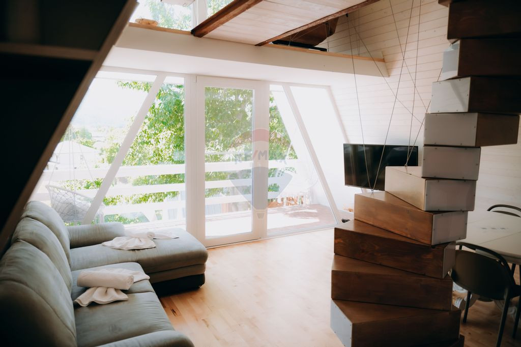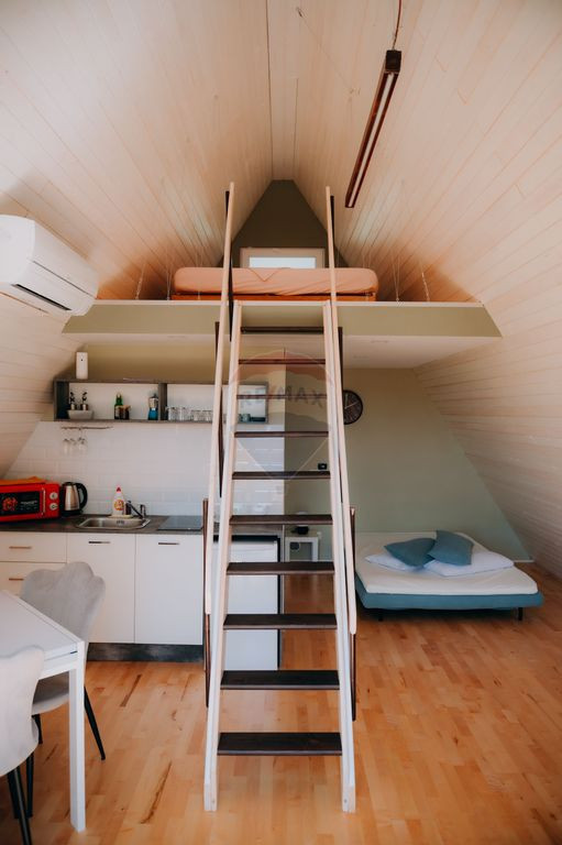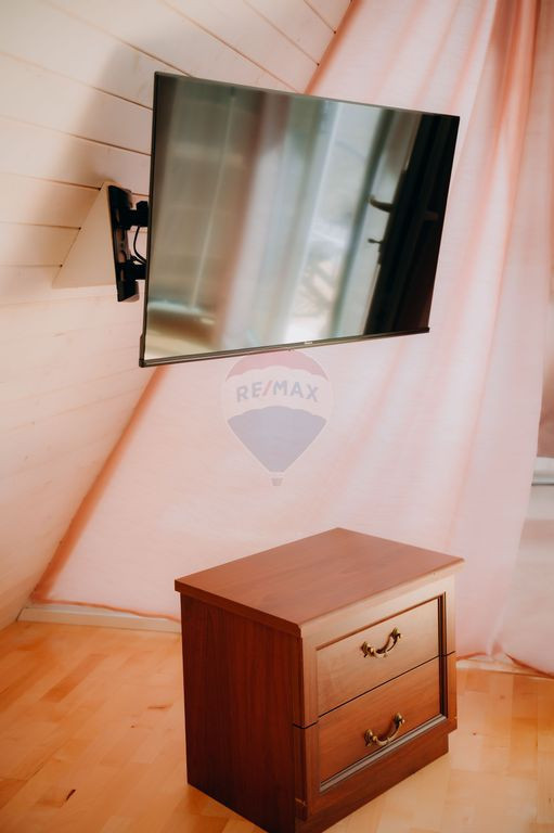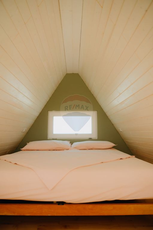 -6 căsuțe tip A-frame, complet mobilate și utilate, fiecare compusă din: