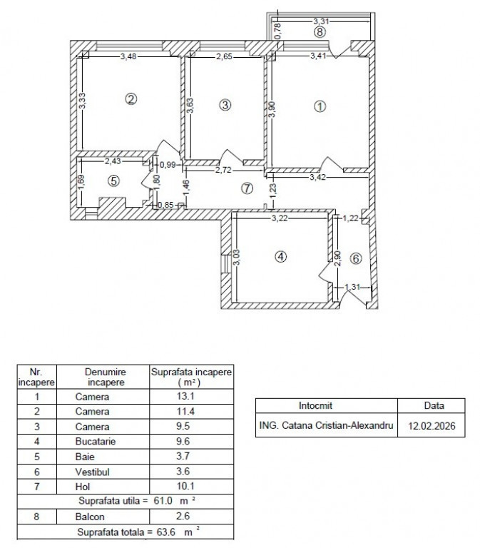 Acest apartament de 3 camere este refugiul urban perfect, situat strategic pentru a îmbina liniștea cu dinamismul orașului. Detalii care fac diferența:. Apartament decomandat cu 3 camere. ???? Orientarea nu este catre strada principala ceea ce vă oferă un plus de liniște) ????Suprafață utila: 61 m2 ???? Balcon: 2.6 m2 ????Suprafață utilă totală: 63.6 m2 ????Gata de mutat: Mobilat și utilat complet, cu un design interior gândit pentru confort absolut ???? Facilități: Loc de parcare inclus în preț. (achitat integral la ADP pe anul in curs), poziționare in fața scării. Localizare strategică (Ești aproape de tot ce contează): ????15 minute de Metrou Costin Georgian, stație STB in fata blocului, stație nod de legătura tramvai/STB la 5 min (stația Pantelimon) ????5 minute de Parcul Sticlăriei; 10 minute de Parcul Cosmos; 15 minute de Parcul Morarilor & Parcul Florilor; 20 min de Parcul Pantelimon si multe alte parcuri mici "intre blocuri" ✅Finisaje moderne: parchet laminat, gresie, faianță, geamuri tripan, ușă metalică ???? Orientare: NW ????Bloc cu lift, supraveghere video și interfon pentru acces controlat. ????Bloc reabilitat termic (anvelopat cu polistiren de 10 cm pe exterior) și consolidat Imobil finalizat în 1974, structură solidă pe cadre din beton armat turnat monolit, rezemați pe o fundatie de tip radier general. ???? Bloc expertizat fără risc seismic (expertiză tehnică făcută în Februarie 2026) Etaj 9 / 10 (locuit) ????️Izolație interioara ai pereților exterior cu vata minerală cu inserție de aluminiu și rigips; ????Parchet 14 mm izolat cu polistiren extrudat de 5 mm + folie PPE 5 mm. ????️Ușă metalică cu Vizor/sonerie video smart, de identificare si supraveghere, wireless (senzori de mișcare, posibilitatea de video interfon direct de pe telefonul tău). Centrala termica proprie Ariston Alteas One WiFi (Control remote - Posibilitatea de a crea 2 intervale de timp cu temp. diferite ???? 2 x Aer condiționat Gree WiFi – Control remote (1 pe hol ce ”bate” in cele 2 dormitoare si unul in sufragerie) ???? Hotă Telescopica Samus cu 2 trepte și gaură de evacuare de Φ 150 cm ⛲Chiuveta multifuncțională cu filtru de apa 3M (instalație apa potabila separat) ????️Plită de sticlă neagră pe gaz marca Beko ♨️ Cuptor electric cu 13 funcții (Air Fry, Steam Cooking, Aqua Clean, curățare pirolitica, etc.) ❄️ Frigider Side-by-Side Sharp cu dozator de apa si gheață. ????️ Cuptor cu microunde CookIt ????Smart-TV Samsung LED 80 cm (în Bucatărie) ☕Cofetieră Krups cu ecran tactil (11 băuturi) ????Smart-TV Samsung 4K LED 125 cm (în sufragerie) ????Smart-TV Sony Bravia 4K LED 123 cm (în dormitor matrimonial) ????Smart-TV Sony Bravia 4K LED 108 cm (în dormitor) ????Mașină de Spălat Samsung 8 Kg cu tehnologie Ai si AddWash (posibilitatea de a adăuga haine ulterior) ????Uscător de rufe Samsung 9 Kg cu pompă de căldură și tehnologie Ai Beneficii zonă: ???? Creșă & Școală gimnazială cu program prelungit; Liceu (toate in raza de 10 min) ???? Spital Malaxa (in fața blocului); Spital Pantelimon (10 min) ???? Kaufland + Mega Image + La Doi Pași in fața bloclui; Carrefour la 10 min. și Lidl la 15 min. ????Apartamentul este pretabil pentru locuinta proprie sau investitie (chirie avantajoasa). ???? 0757025052 Preț: 132.000 Euro (nu se percepe TVA; Comision 0%; Proprietar).