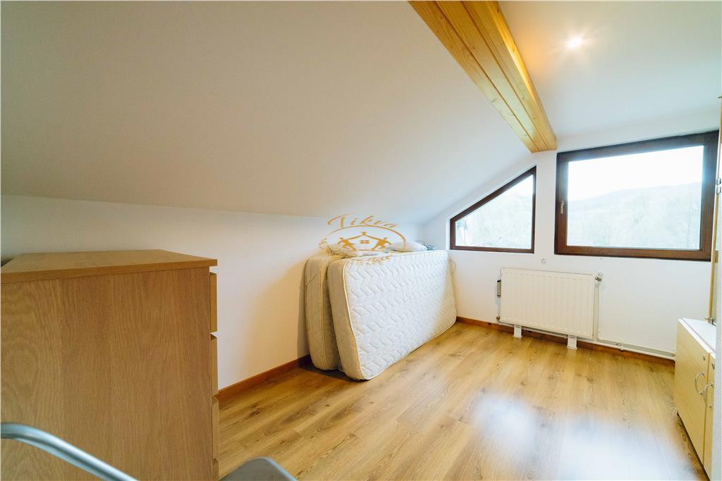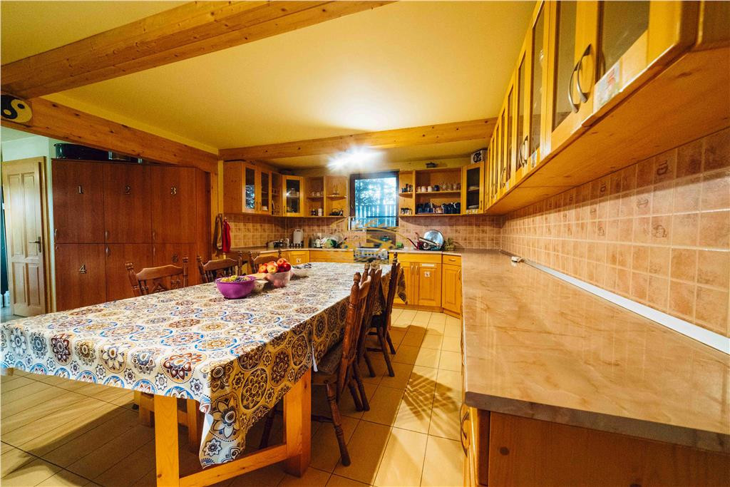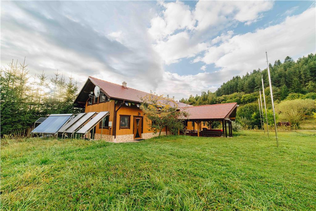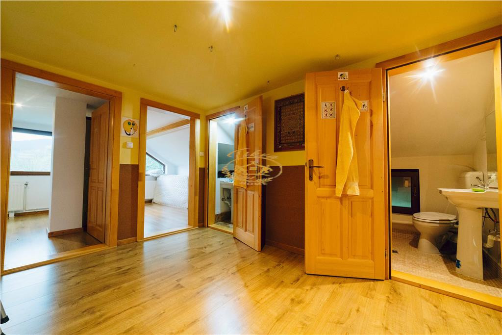 Va propunem spre vanzare imobil construit in 2015, utilizat ca centru de studii, si terenul intravilan aferent de 19.841 msup2; in zona Heveder, Com. Voslabeni (din punct de vedere administrativ apartinand satului Valea Stramba, Com Suseni), jud. Harghita. Imobilul este situat intr-o zona linistita, aproape de padure, putand fi accesat cu masina pe un drum pietruit (cca. 2 km de la DE578) sau din centrul comunei Voslabeni pe drum asfaltat (cca. 5 km). Imobilul are regimul de inaltime P M, cu suprafata construita la sol de 180 de msup2; si suprafata construita totala de 360 msup2;. Compartimentare: #9679; la parter: hol, bucatarie, coridor, 5 camere (fiecare dotata cu 2 paturi single si un pat supraetajat), 3 bai (cu cabina de dus si WC); #9679; la mansarda: hol, 5 camere, baie (cu dus si WC), 2 grupuri sanitare cu WC, sala de studii, coridor, birou. Cladirea fost construita din lemn, este izolata termic la interior si exterior cu vata minerala bazaltica si este acoperita cu tigla ceramica. Icirc;ncalzirea imobilului este asigurata printr-o centrala termica proprie pe combustibil solid (la parter este instalata incalzire in pardoseala, la mansarda sunt montate calorifere), iar apa calda prin panouri fotovoltaice. Imobilul dispune de utilitati: este racordat la reteaua electrica, apa este asigurata din fantana forata proprie, iar canalizarea prin fosa septica. Cladirea este dotata cu sistem de alarma. Imobilul se vinde mobilat. Pe teren se gasesc anexe: o terasa acoperita, o casuta de serviciu cu suprafata de 20 msup2; (momentan utilizat ca depozit), precum si un grajd cu suprafata de 30 msup2;. Icirc;n curte sunt plantate pomi fructiferi si plante ornamentale. Pe langa destinatia actuala imobilul poate fi utilizat si in scopuri turistice, permitand cazarea a 28-30 de persoane in camere. Terenul generos ofera posibilitate de parcare pentru mai multe masini, precum si posibilitatea de investitii sau edificarea altor constructii. Pret: 295.000 EUR - negociabil.