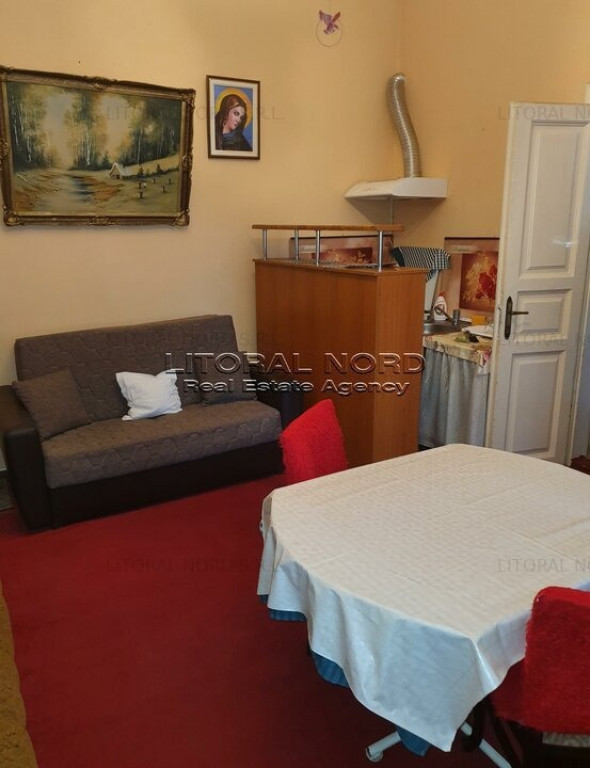 Proprietate intermediata exclusiv de agenția LITORAL NORD S.R.L. Centru - Str. General Manu, garsoniera la casa, 24mp, intrare separata, hol, baie, bucatarie deschisa amenajata in camera, foarte curat, mobilata, utilata, ambele canapele se extind, topper pentru canapea. Se inchiriaza doar pentru o singura persoana, pe termen lung, minim 1 an, fotografiile sunt reale. Pret 1.000 lei/luna + garantia de 1.000 lei, comision client 50% din chiria aferenta unei luni de chirie. La pretul de 1.000 lei se adauga si utilitatile, curentul (contor pasant), apa, cablu tv si căldura care este centralizata (termoficare - aproximativ 300 lei/luna caldura) Detalii suplimentare. agentia Litoral Nord, tel: 0720300272